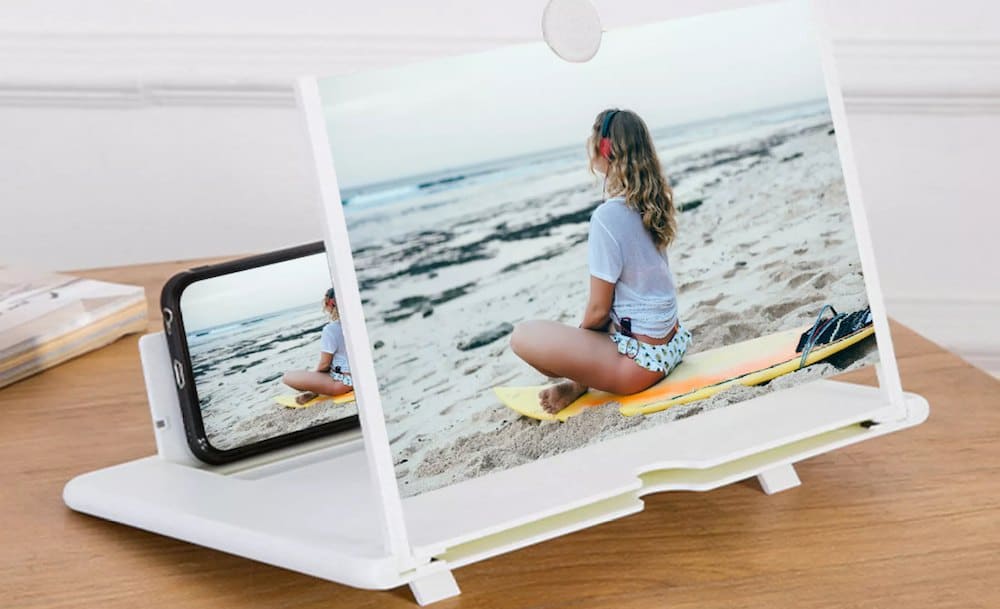 3D увеличитель экрана телефона усиливает изображение в несколько раз, значительно снижая утомляемость глаз; картинка остается яркой и четкой, не теряет качества, становится более реалистичной. Складная регулируемая подставка для телефона надежно фиксирует устройство на столе под нужным углом наклона.
