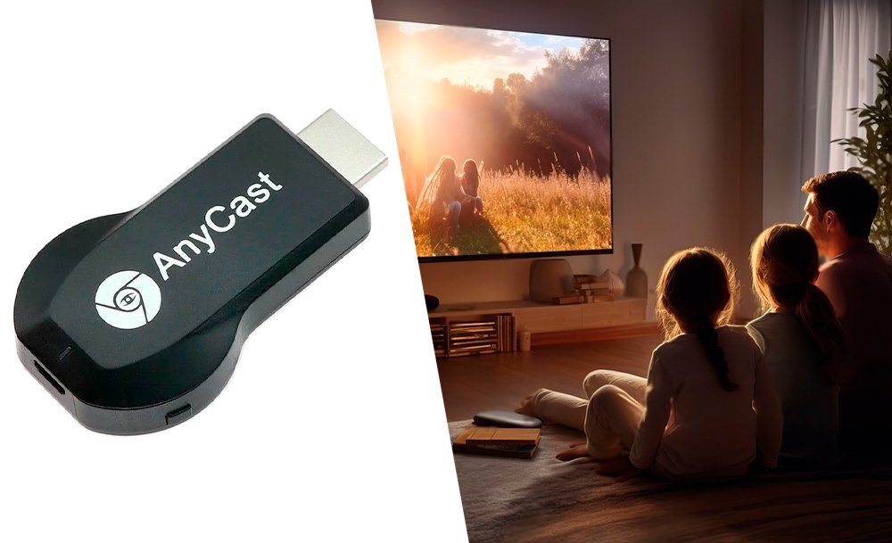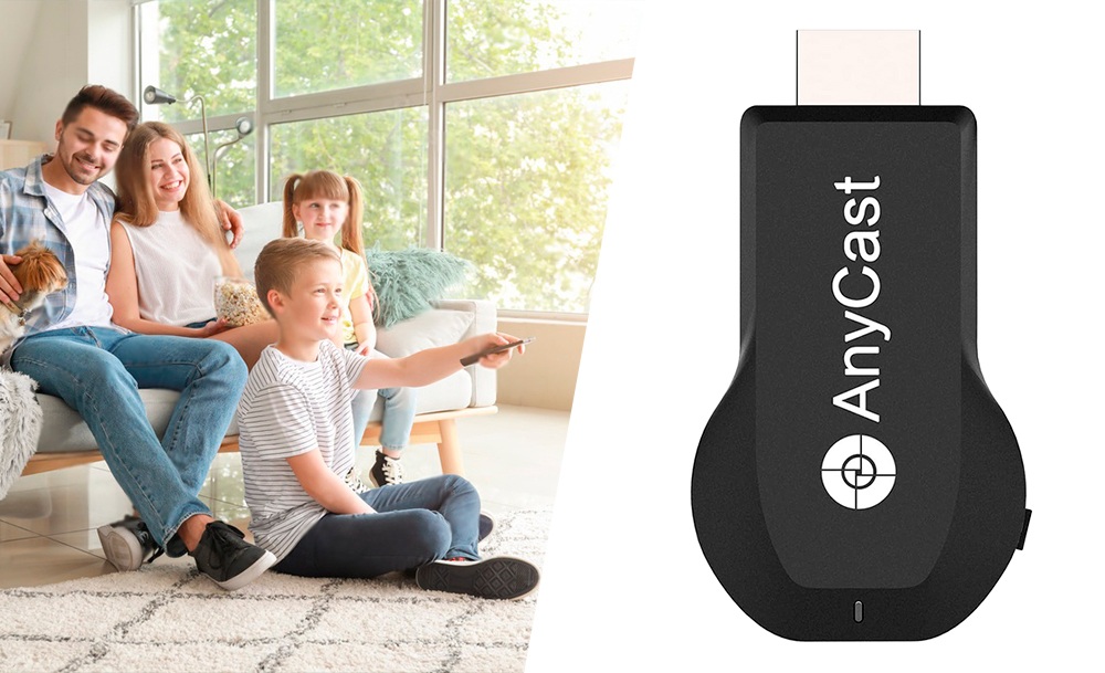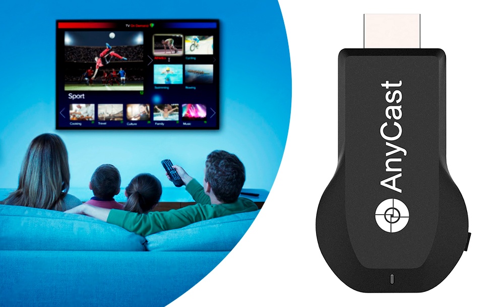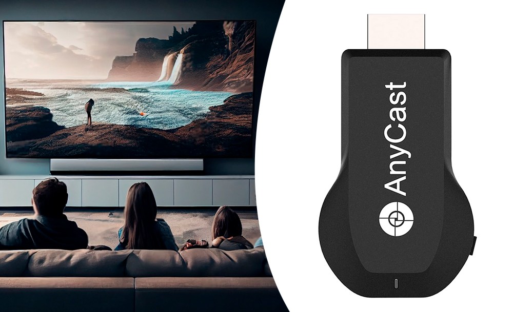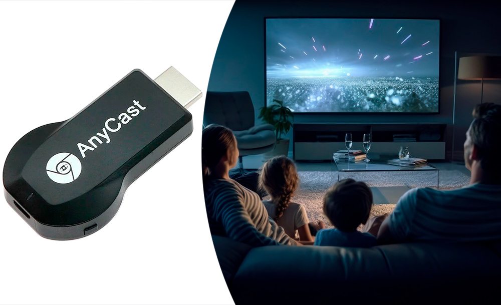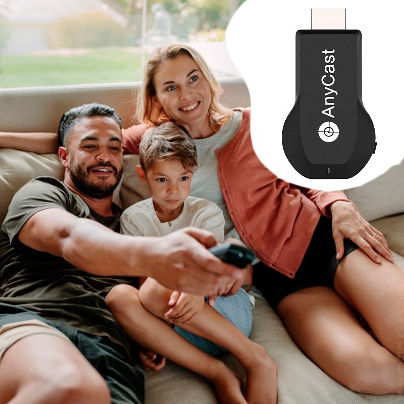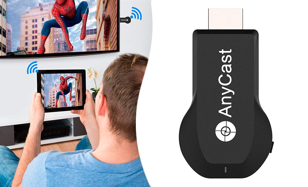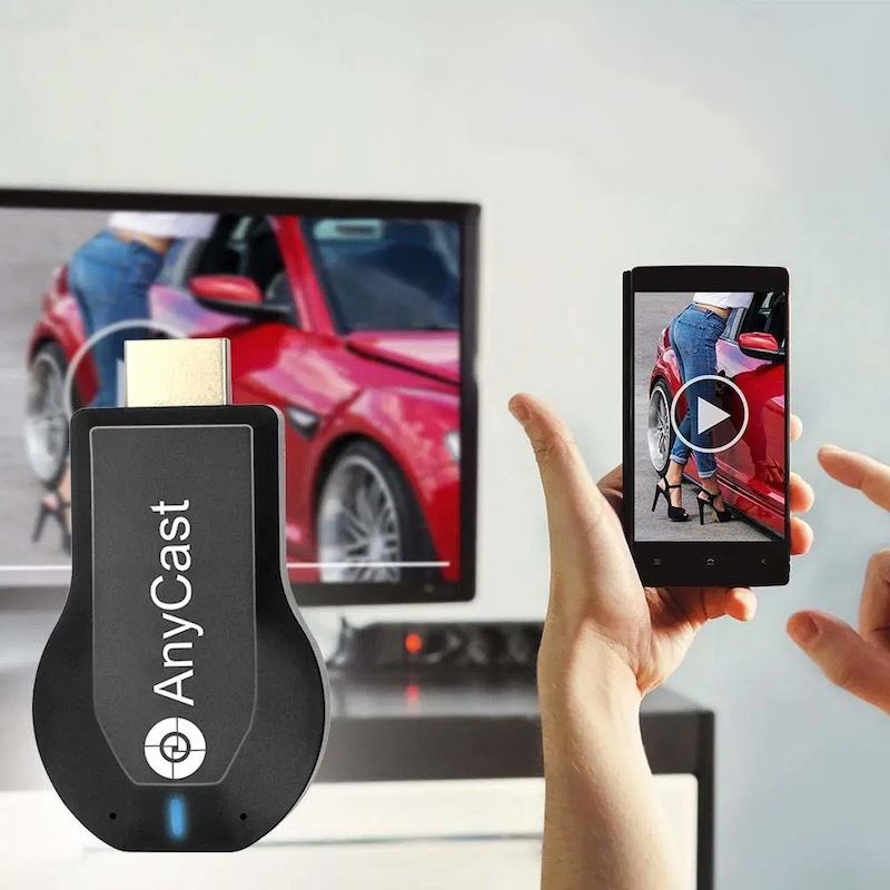 AnyCast – это обновленный адаптер для отображения экрана смартфона, планшета или компьютера на большом экране телевизора или проектора без проводов Wi-Fi. Устройство не требует наличия Wi-Fi на телевизоре, достаточно иметь разъем HDMI.