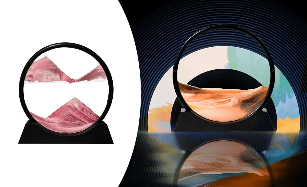 Песочная 3D картина – универсальный аксессуар, который идеально впишется в любой интерьер. Песок, медленно стекая сверху вниз через воздушные пузыри, создает удивительные картины, успокаивающие и расслабляющие. Движение песка трансформируется в абстракции, вдохновляемые горными видами, долинами и пустынями.