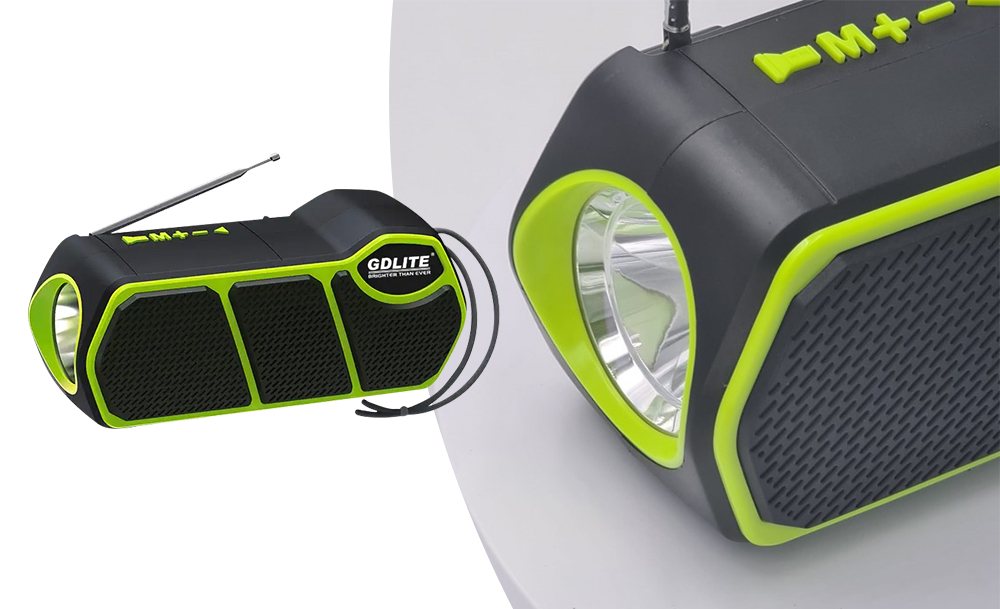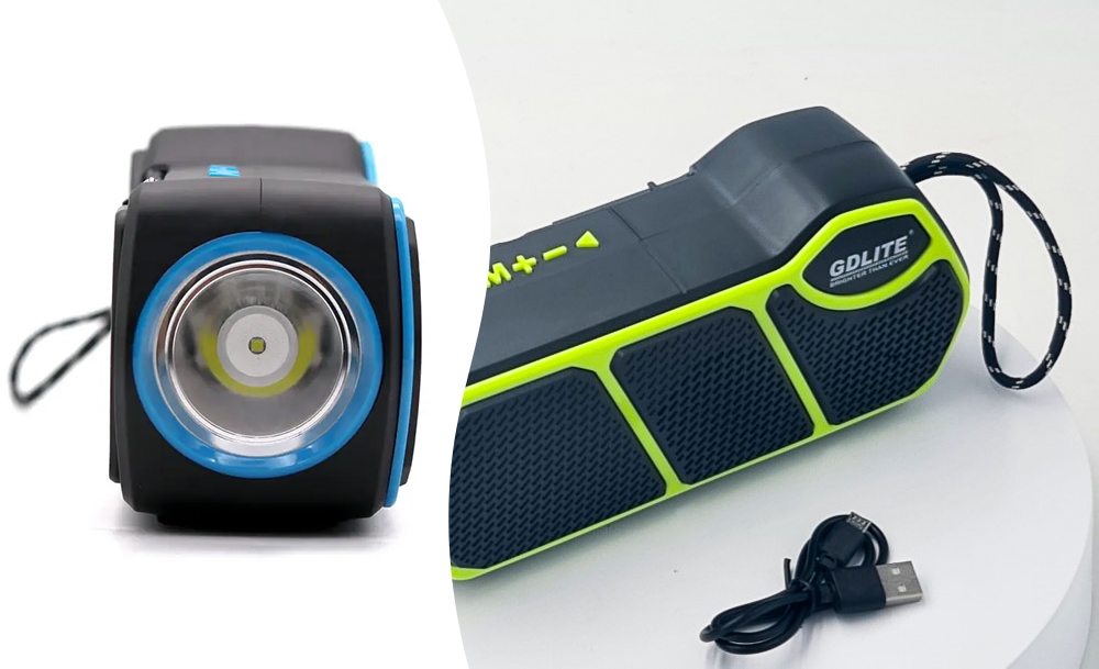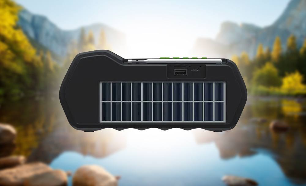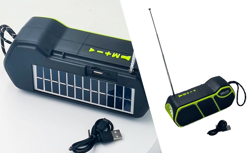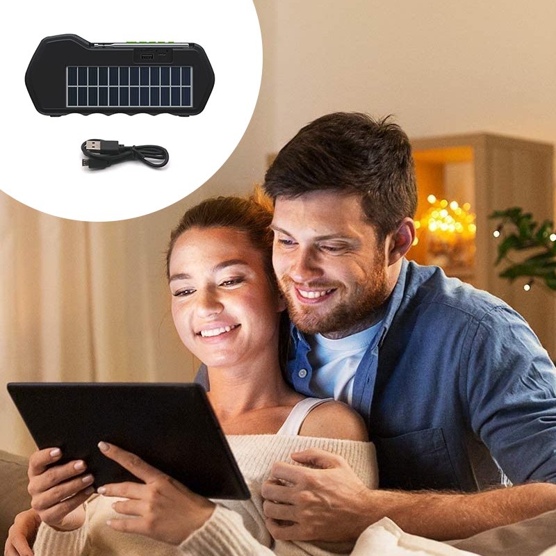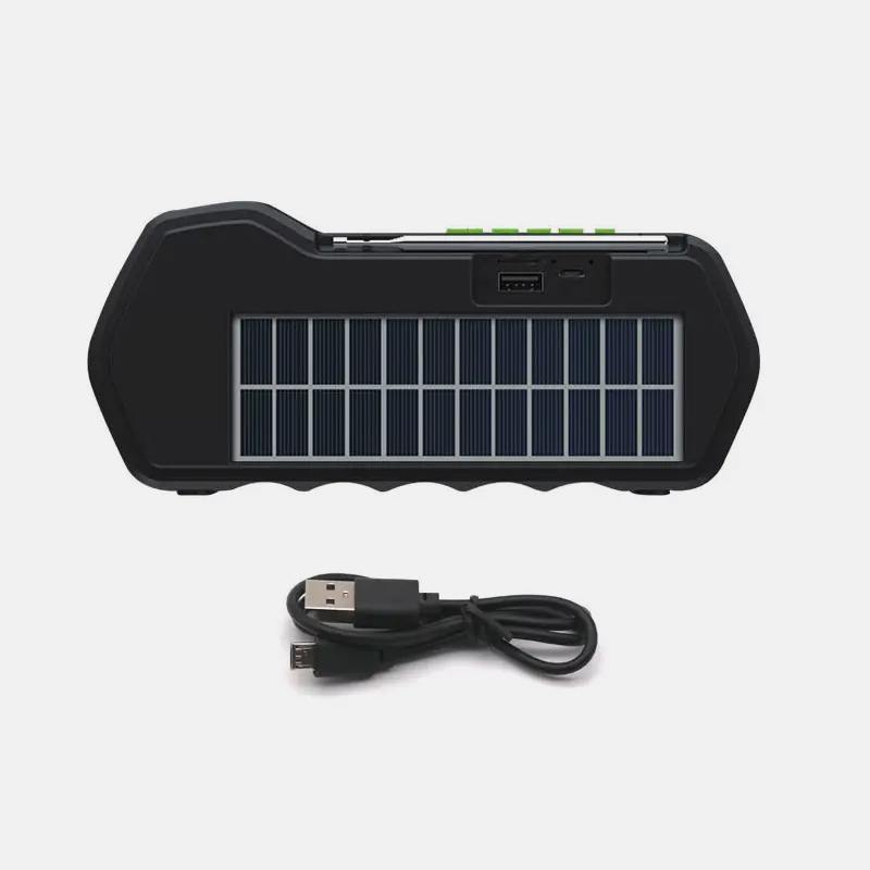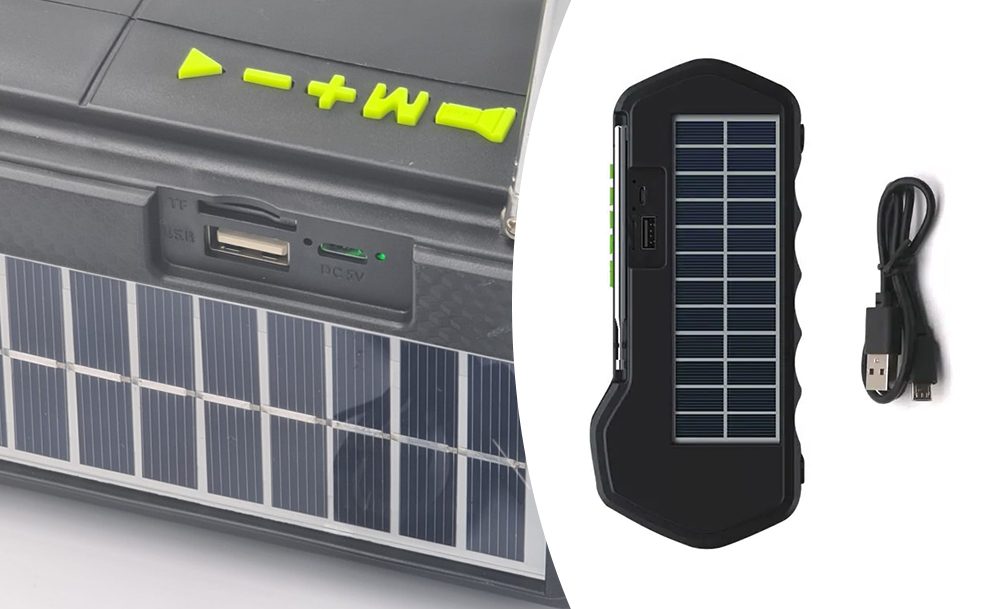 Фонарь можно заряжать как от электросети, так и от солнечной панели. Через Bluetooth есть возможность подключить телефон и другие гаджеты. Встроенная аудиосистема работает как радиоприемник и поддерживает качественный звук при воспроизведении музыки файлов МР3 с SD-карты или USB-флеш.