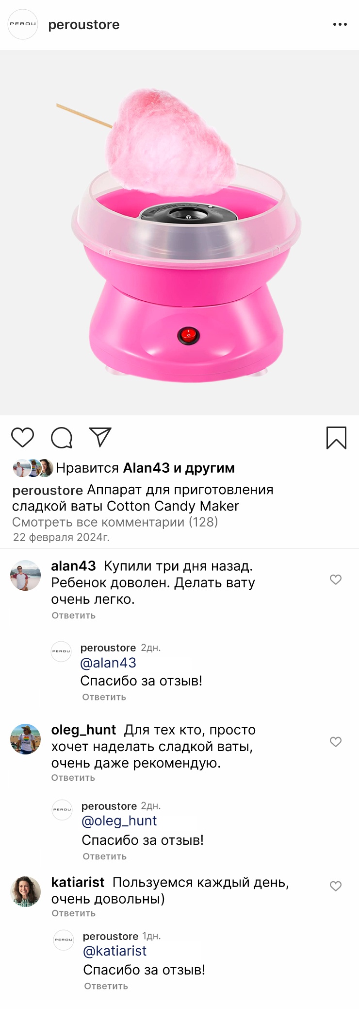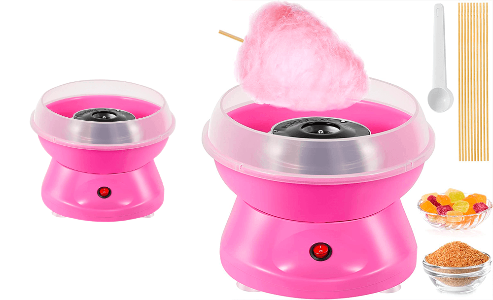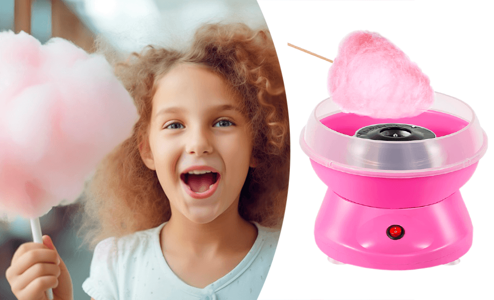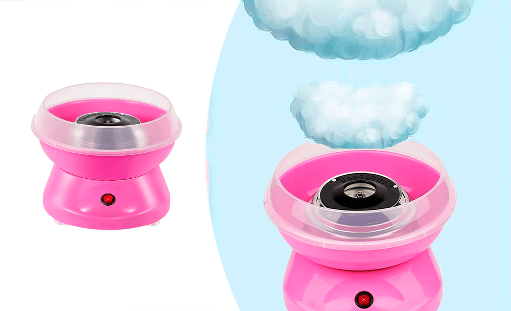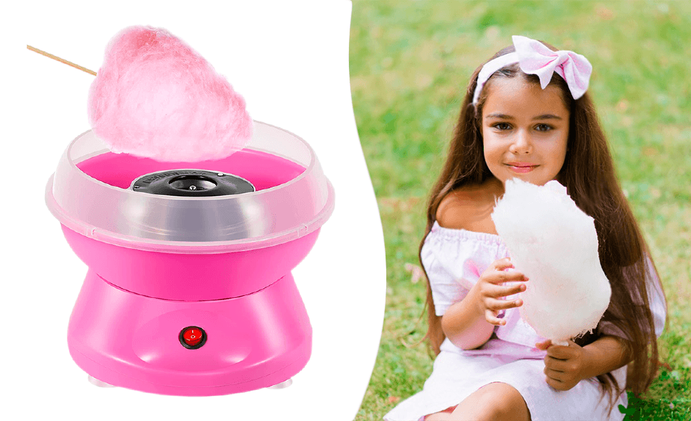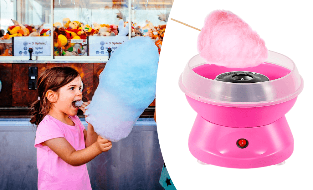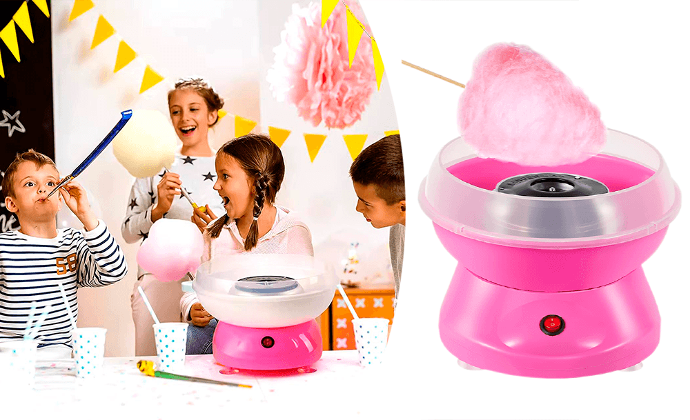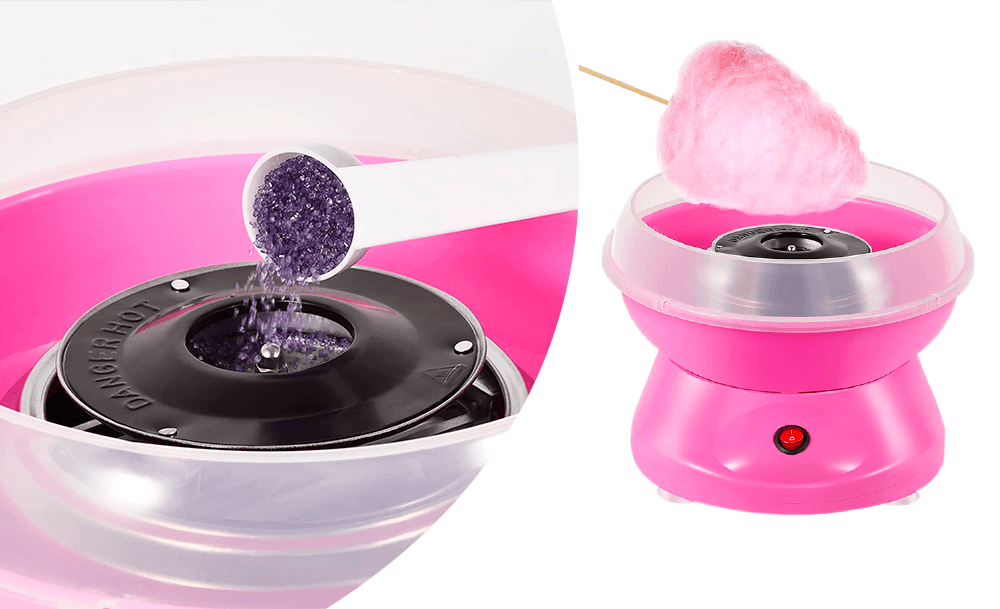 Предлагаем вашему вниманию аппарат Cotton Candy Maker, который поможет легко приготовить любимое с детства лакомство – сладкую сахарную вату. Для этого просто засыпаем в специальный резервуар 1 чайную ложку сахара, затем включаем прибор и ждем несколько минут, пока он нагреется и появится сахарная паутина.