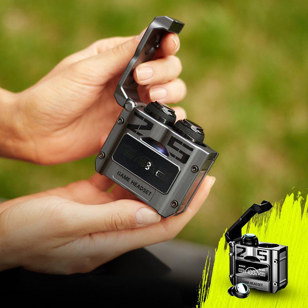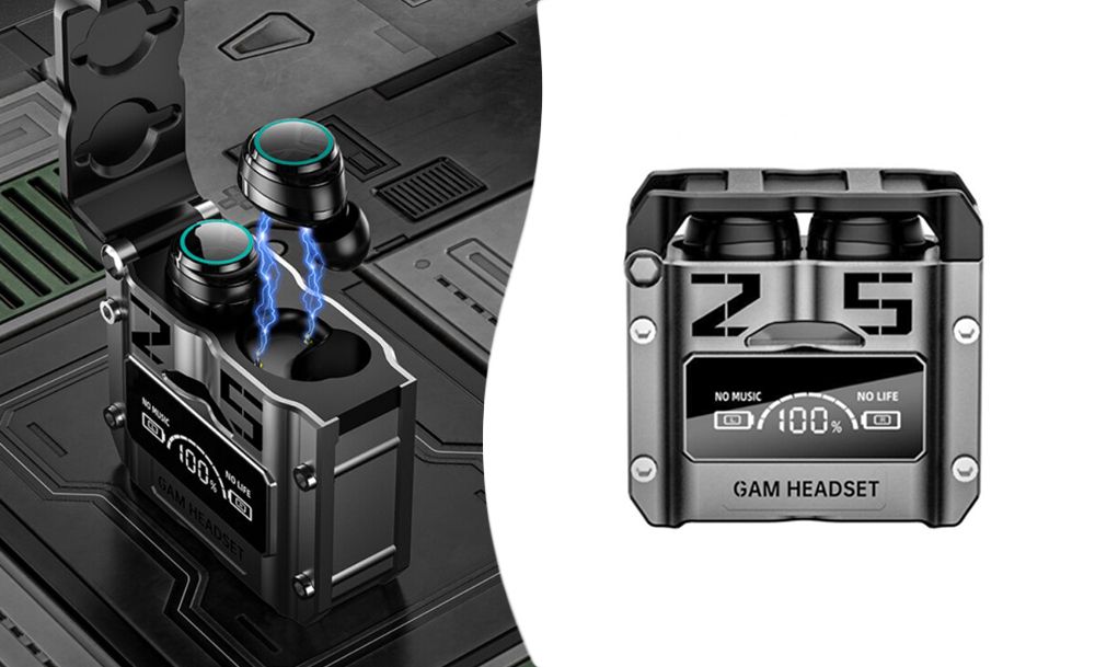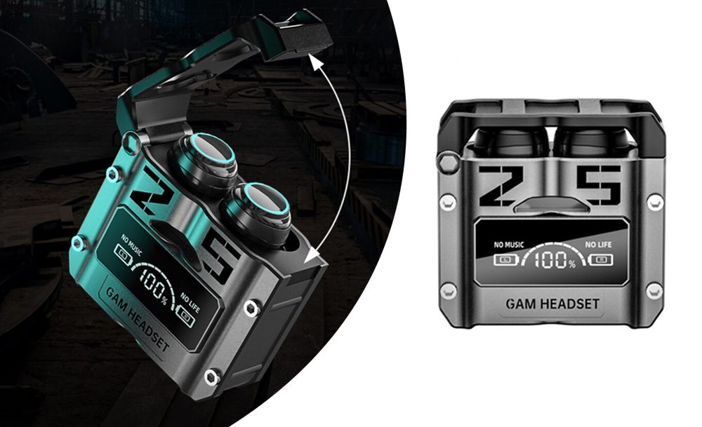 Наушники оснащены чувствительными кнопками, которые дают возможность воспроизведения и остановки звучания, управления громкостью, переключения треков, ответа на телефонные звонки. Кейс оснащен мощным аккумулятором, цифровым дисплеем и световым индикатором заряда.