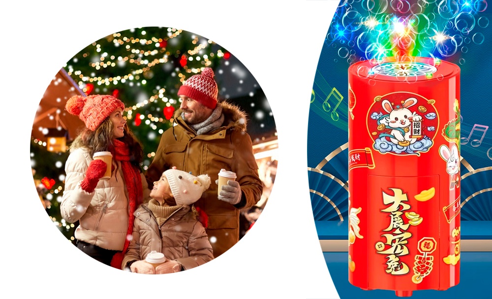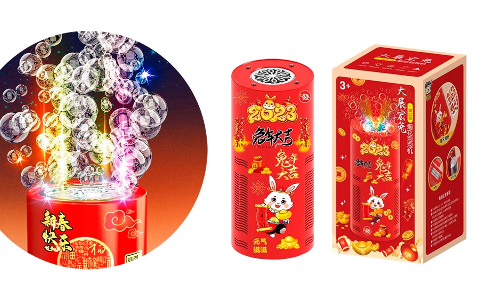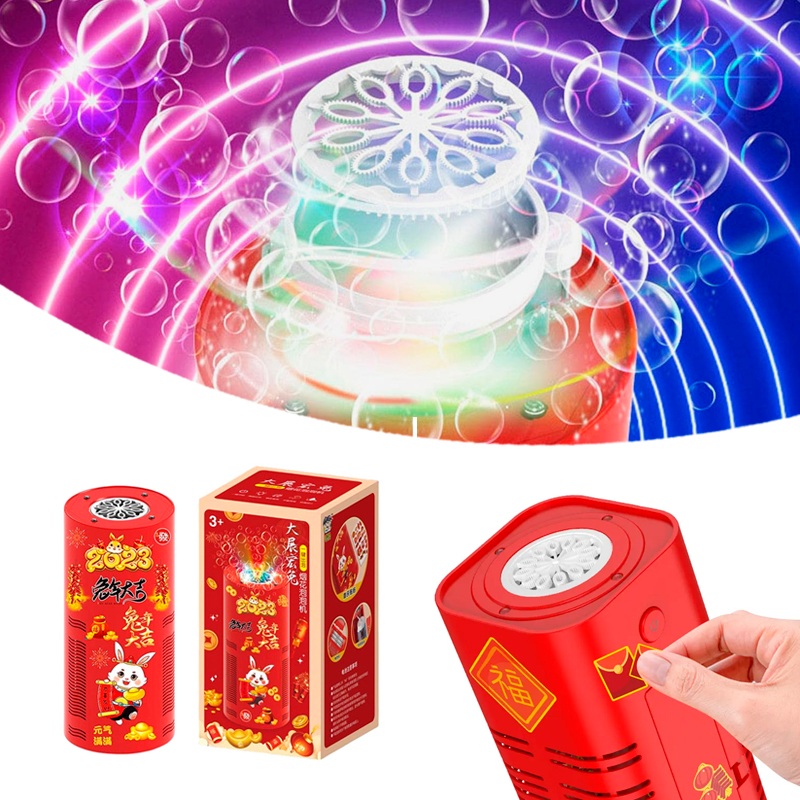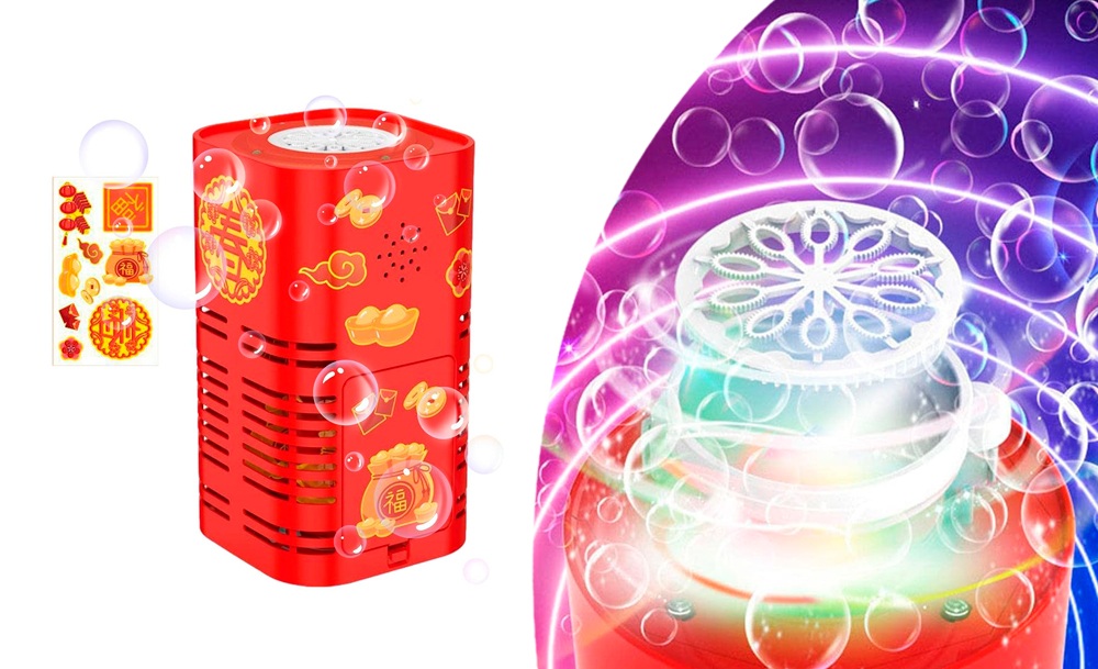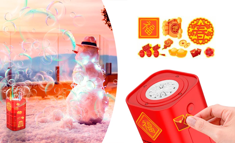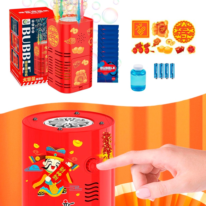Данное устройство оснащено механизмом, который с помощью специального раствора и встроенного вентилятора создает густой поток мыльных пузырей. Верхняя часть конструкции имеет множество отверстий, из которых создаются пузырьки, а сбоку корпуса генератор мыльных пузырей фейерверк имеет специальный отсек для емкости с жидкостью.