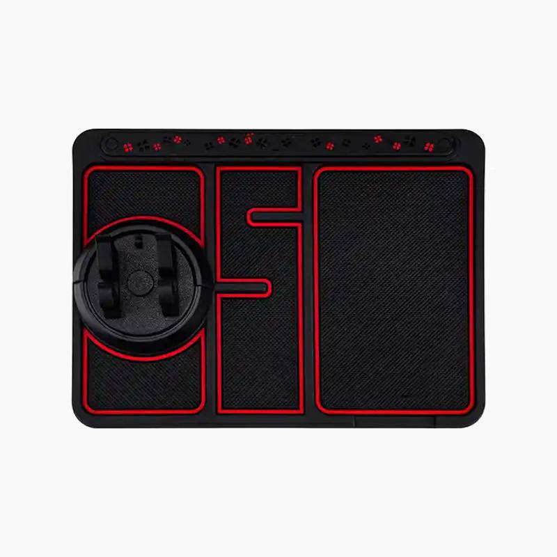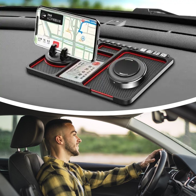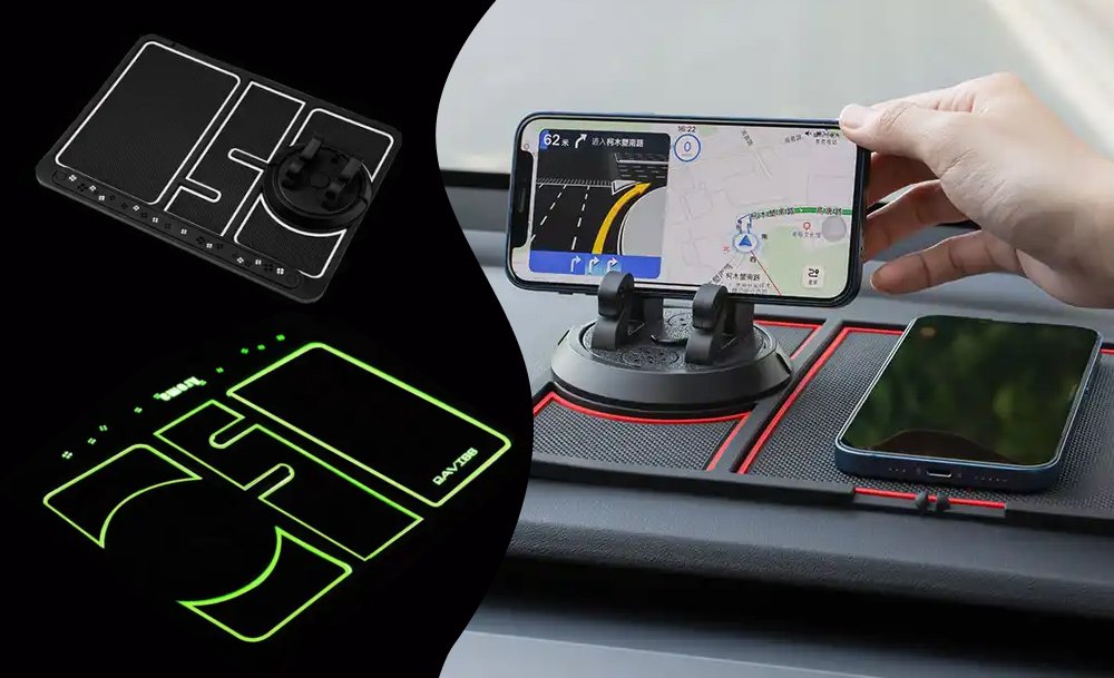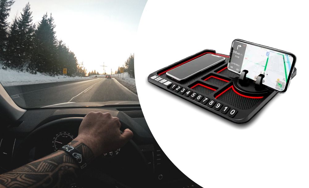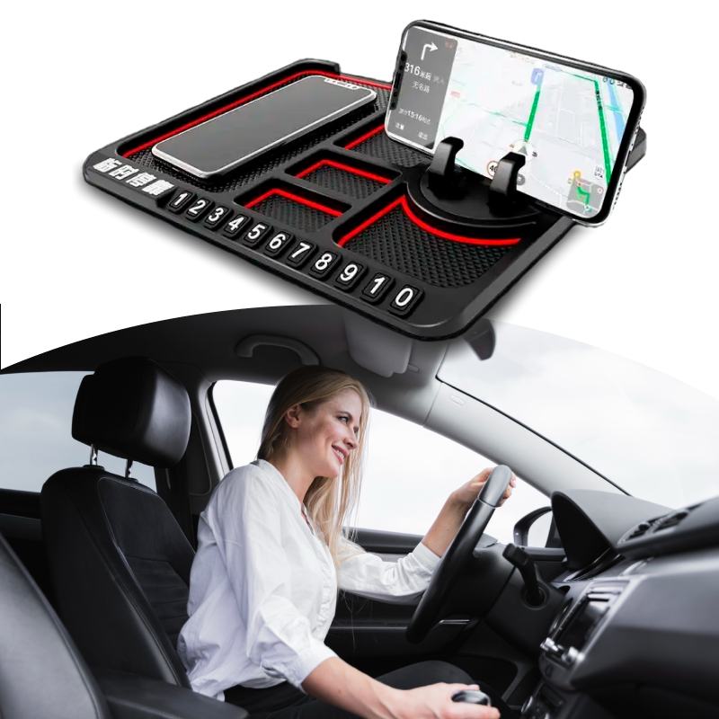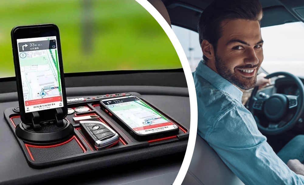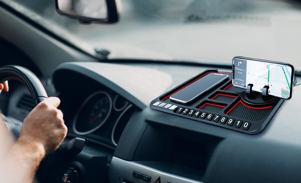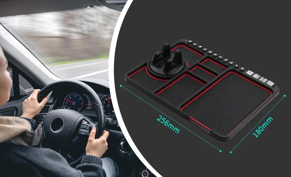 Липкий противоскользящий коврик на панель в авто позволит навести порядок и не растерять вещи даже во время движения. На нем удобно и компактно разместятся держатель со смартфоном, ключи и другие мелкие предметы, а также визитница для номера телефона на случай временной парковки.