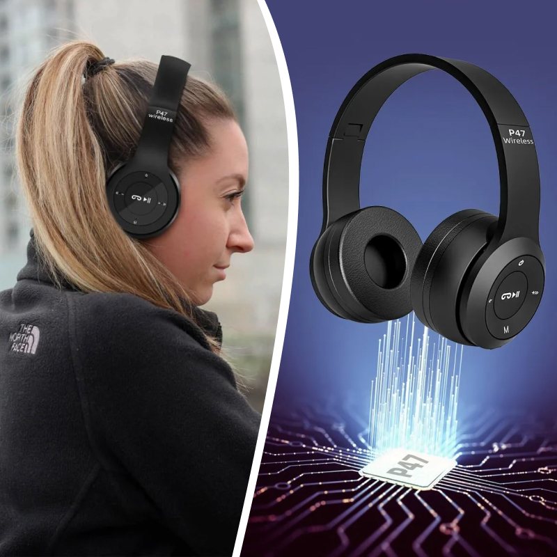 Беспроводные Bluetooth наушники Р47 со встроенным микрофоном и функцией шумоподавления позволяют слушать любимую музыку и разговаривать по телефону в любом шумном месте. Мягкие накладные амбушюры плотно прилегают к ушам, а регулируемая под размер своей головы дужка гарантирует их комфортное использование в течение длительного времени.