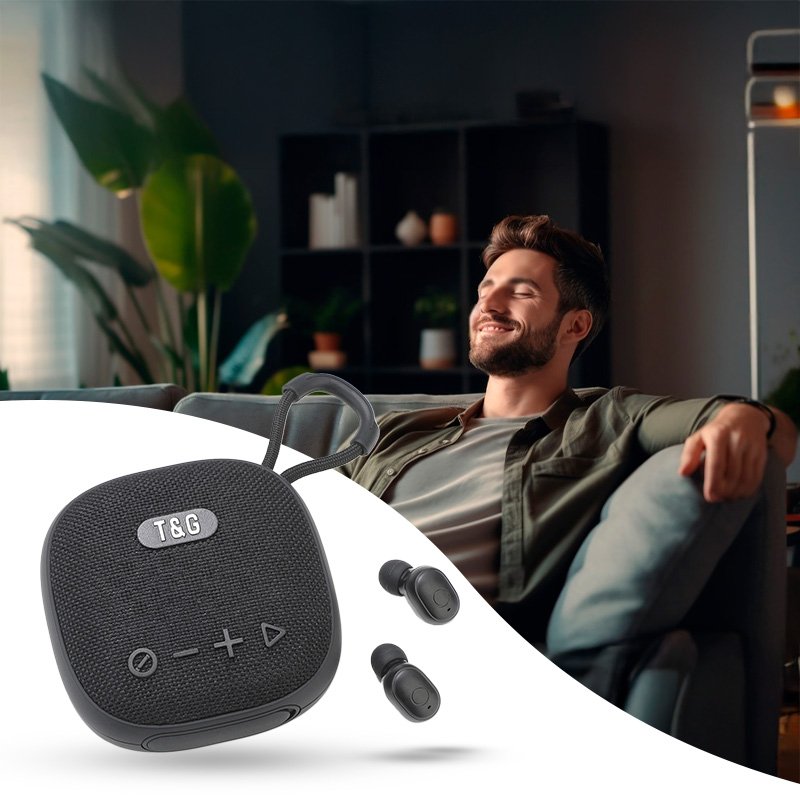 Bluetooth-колонка TG813 с наушниками и Power Bank – это новая акустическая система, сочетающая в себе сразу несколько функций. Мощный динамик и беспроводные TWS наушники с шумоподавлением обеспечивают чистый объемный звук. Технология Bluetooth 5.0 совмещается с любыми устройствами, быстро подключается и гарантирует стабильный устойчивый сигнал.