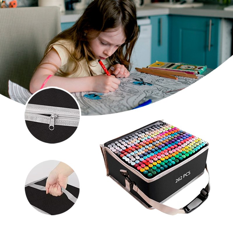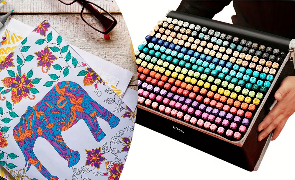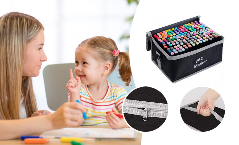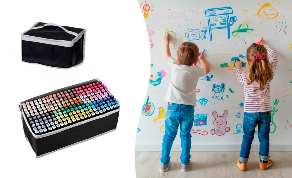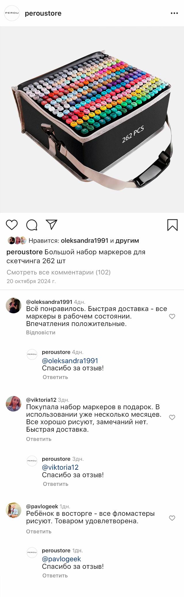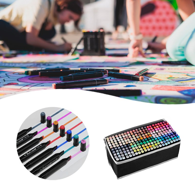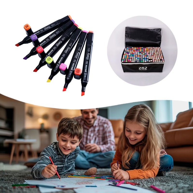 Маркеры имеют два пера – тонкое и широкое. Заправлены без кислотными нетоксичными чернилами. Отлично сочетаются, создают плавные градиенты. Вся палитра цветов этих маркеров состоит из 262 цветов.