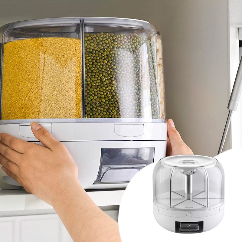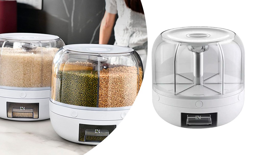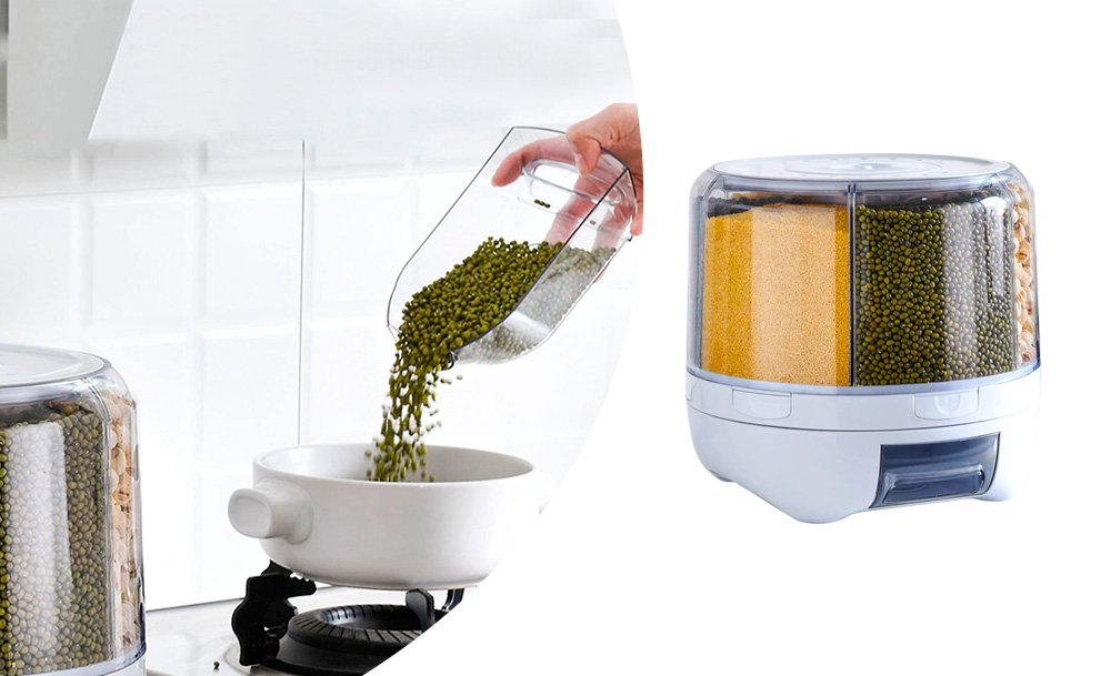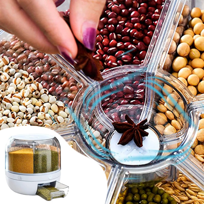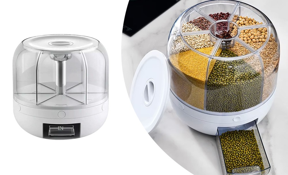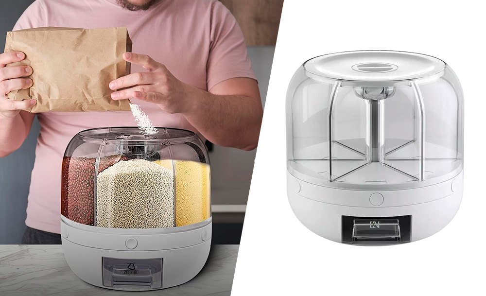 Каждая секция позволяет хранить различные продукты отдельно, что упрощает их использование и помогает содержать кухню в порядке. Благодаря вращающемуся механизму, диспенсер легко поворачивается, что обеспечивает быстрый доступ к нужным продуктам во время приготовления пищи.