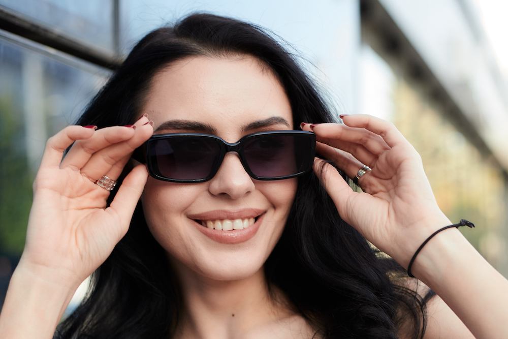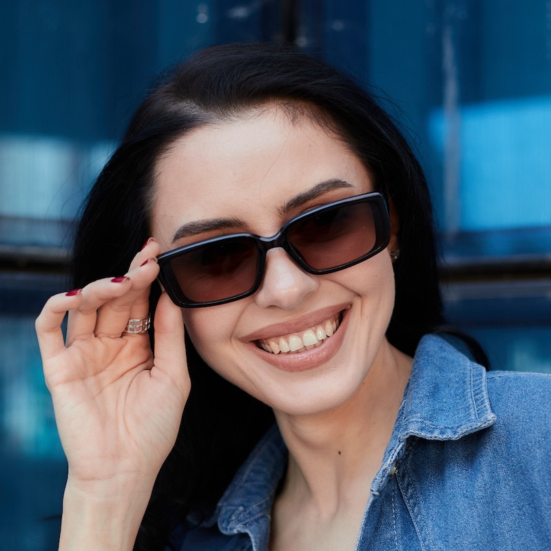 Легкая и прочная оправа с плавно закругленными заушниками удобно располагается на лице, не скользит, не сползает, а это значит – носить ее можно длительное время, ощущая себя комфортно. Темные линзы серого, коричневого или черного цветов надежно защищают глаза от ярких солнечных лучей и ультрафиолета.