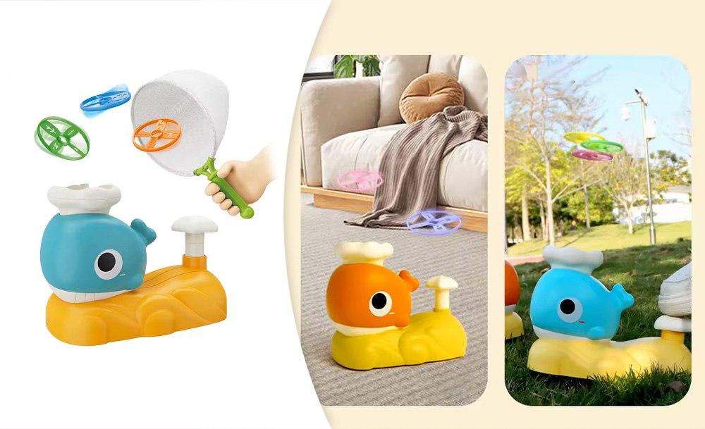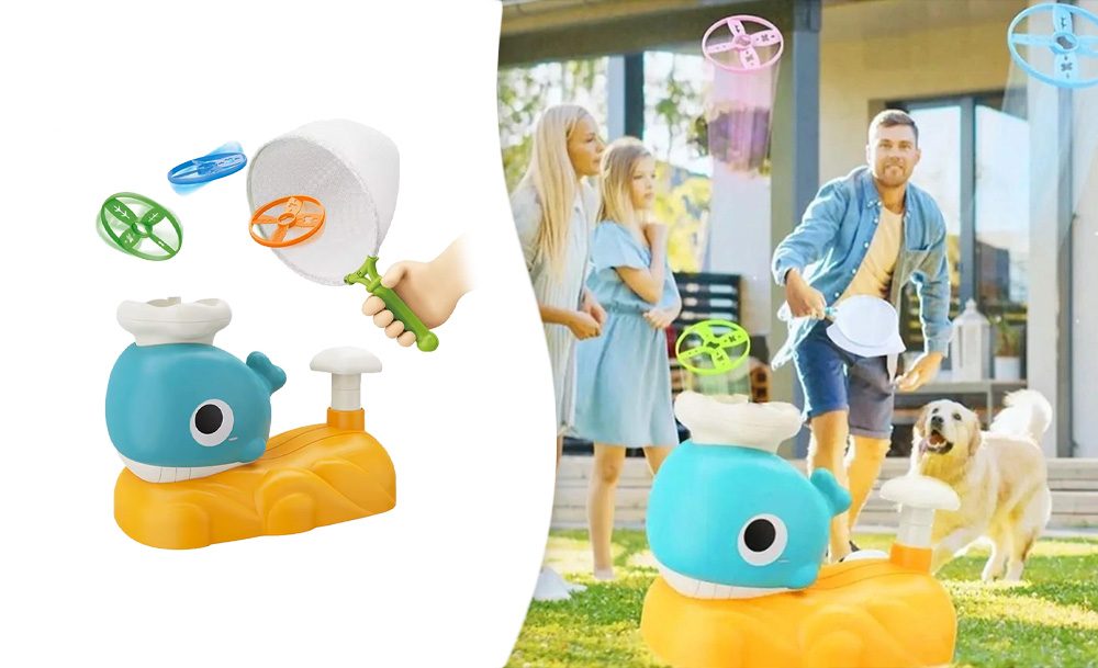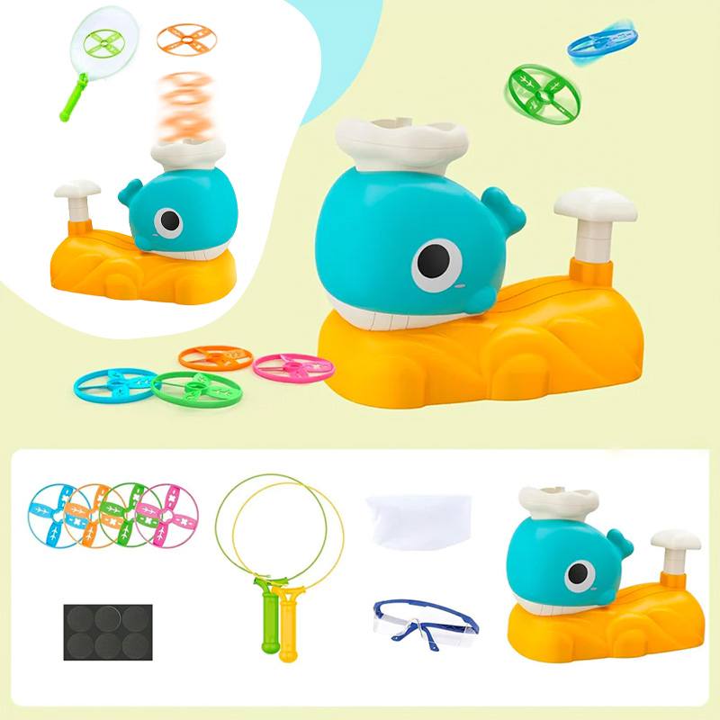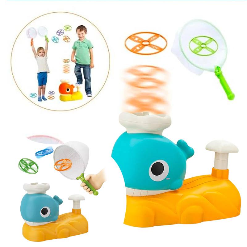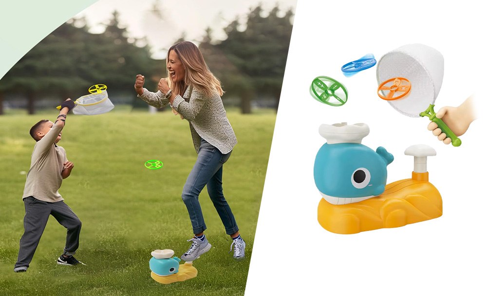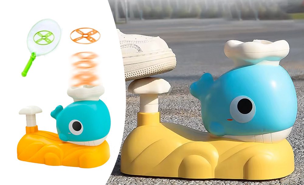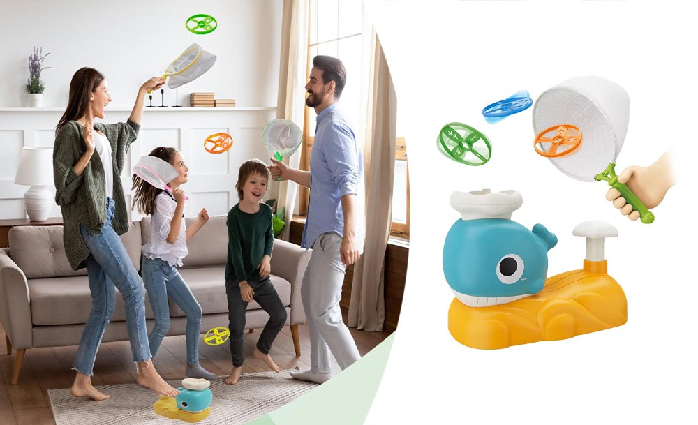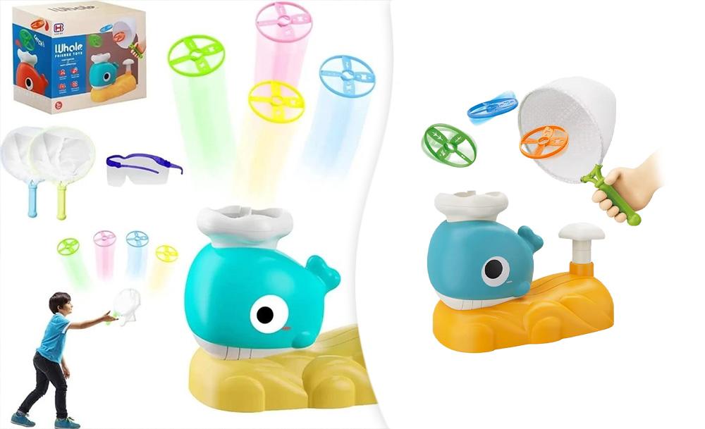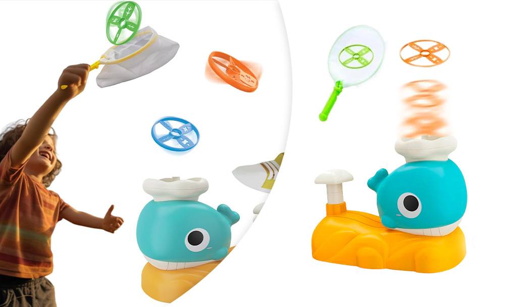 Помещая диск на спину кита и нажимая педаль, вы запускаете игрушку, которая взлетает в воздух. Летающую тарелку можно словить с помощью специального сачка. Существуют различные варианты игры, и вы можете наслаждаться игрой с друзьями и даже с домашними животными.