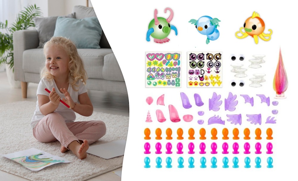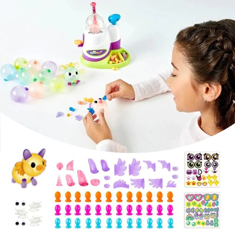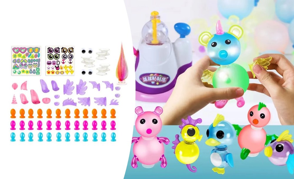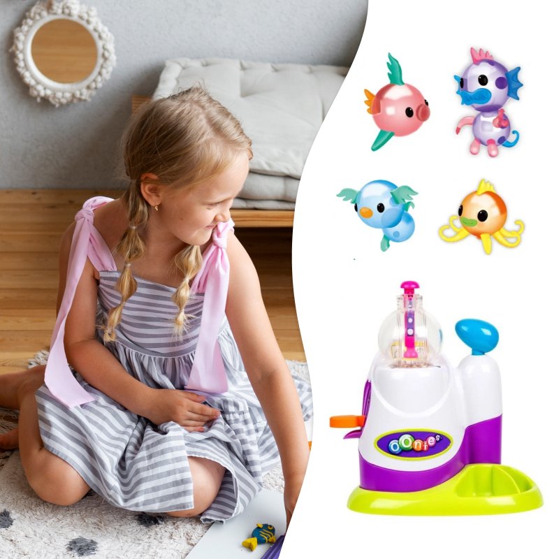 На специальной базе из заготовок надуваются воздушные шары, которые склеиваются друг с другом в нужном порядке, но не липнут к рукам. Готовой игрушке можно сделать глазки и декорировать дополнительными деталями, которые входят в набор. Комплект выполнен из качественных и безопасных для здоровья материалов. Ребенок получит не только удовольствие от игры и творчества, но и пользу для собственного развития.