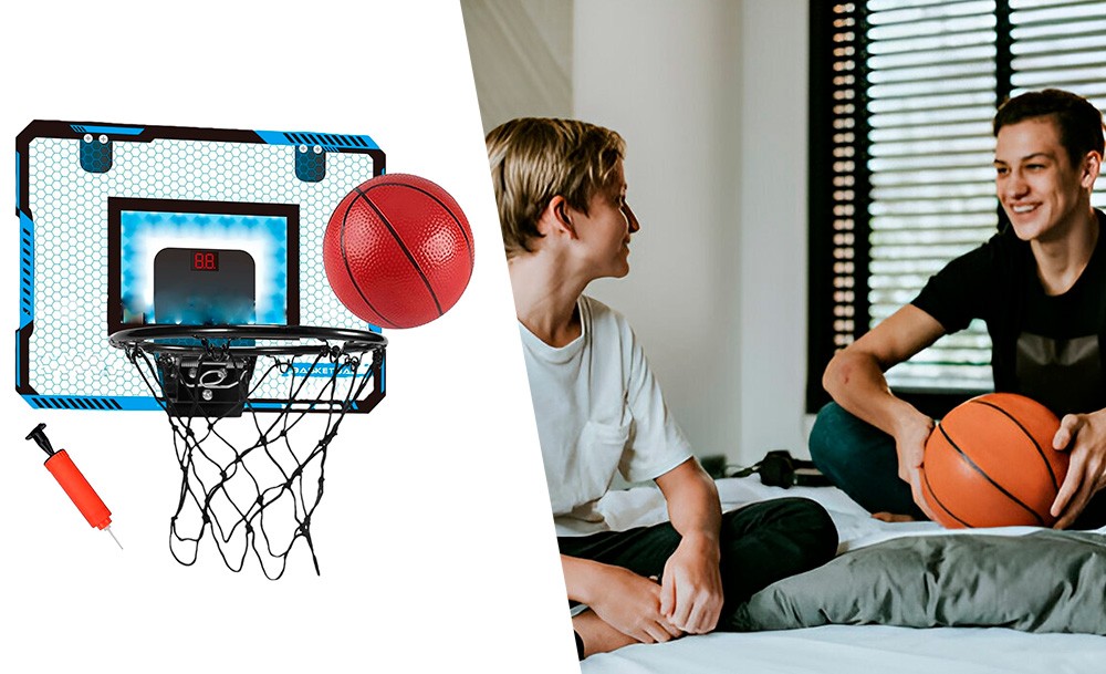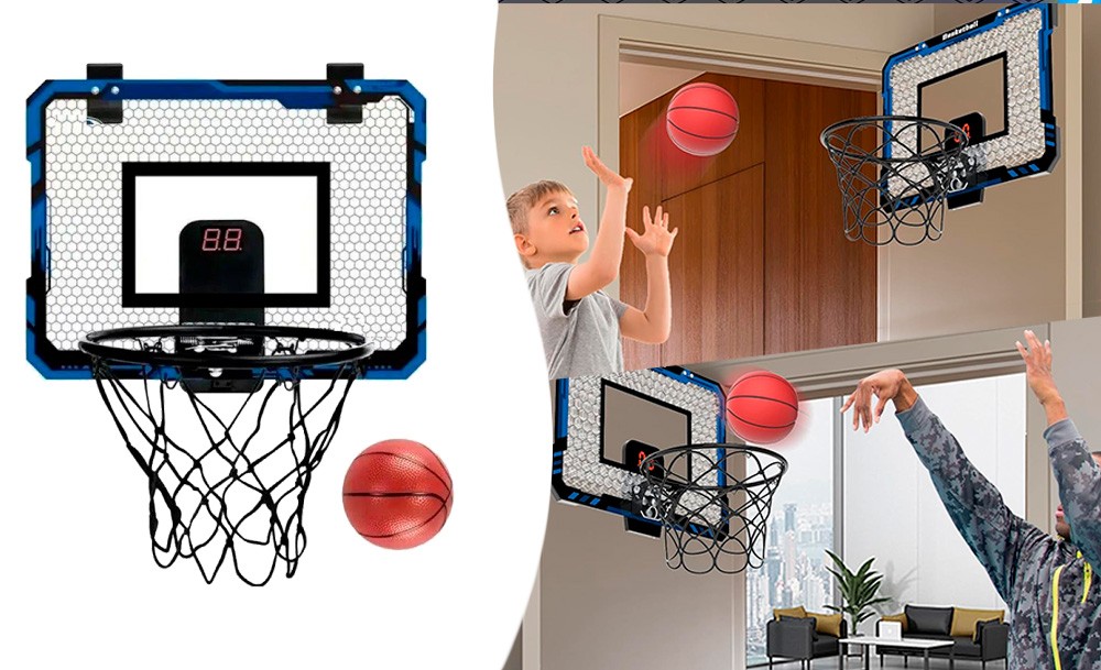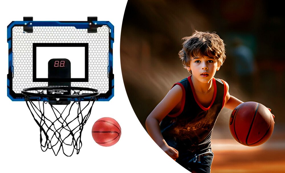 Детский баскетбольный набор с электронным табло – это идеальный аксессуар для активных игр и первых спортивных достижений! Комплект включает все необходимое для увлекательной игры: прочный пластиковый щит, металлическое кольцо с сеткой, мяч и насос. Электронное табло со звуковыми эффектами делает процесс игры динамичным и увлекательным, фиксируя каждое попадание в кольцо.