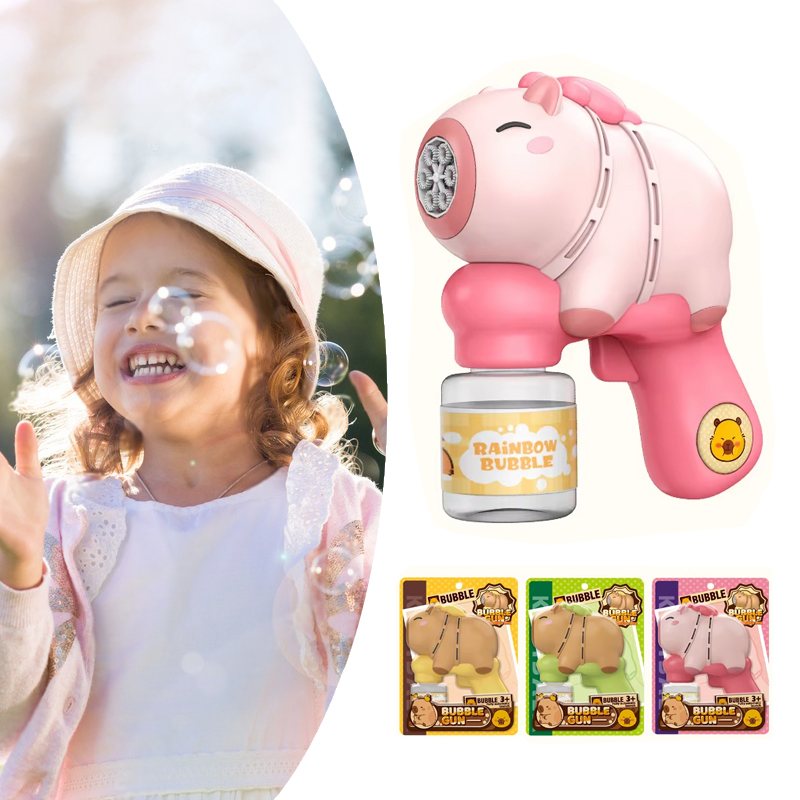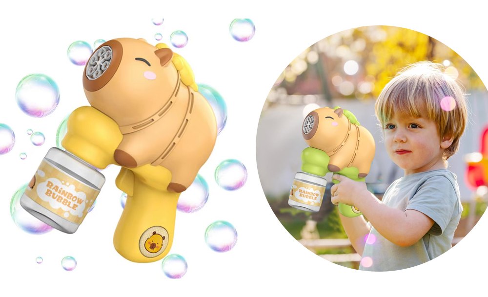 Детский автомат для мыльных пузырей Capybara Bubbles — это удобное и безопасное развлечение для детей любого возраста. Благодаря автоматическому режиму он генерирует множество пузырей за считанные секунды. Эргономичная форма и приятный дизайн в виде капибары делают его удобным как для дома, так и для улицы.