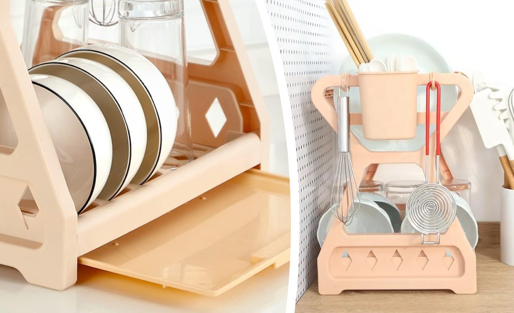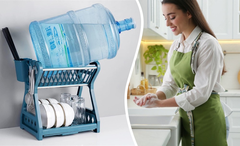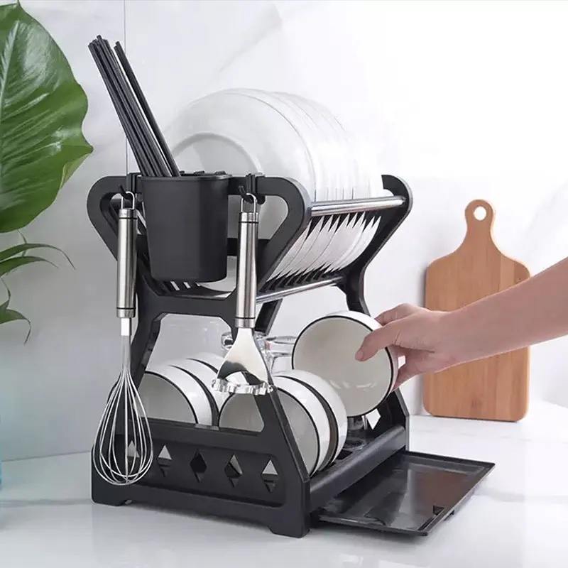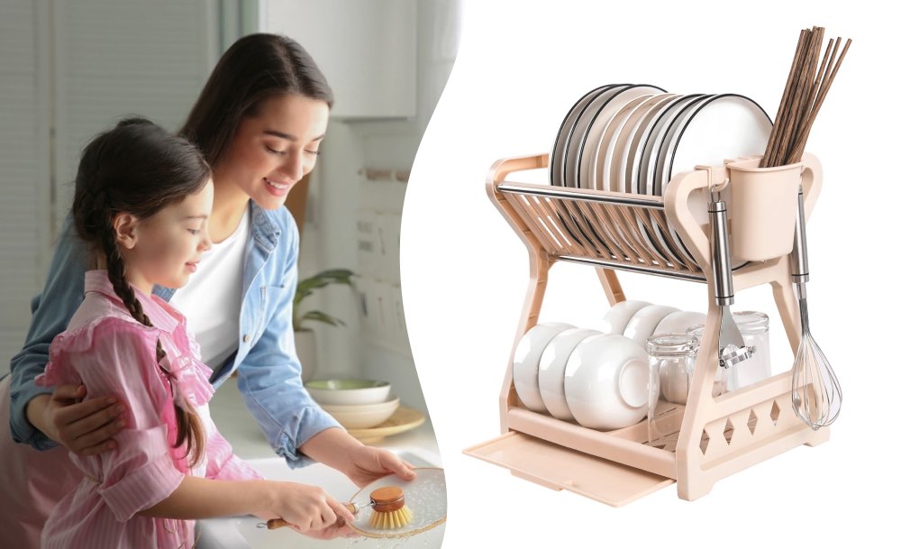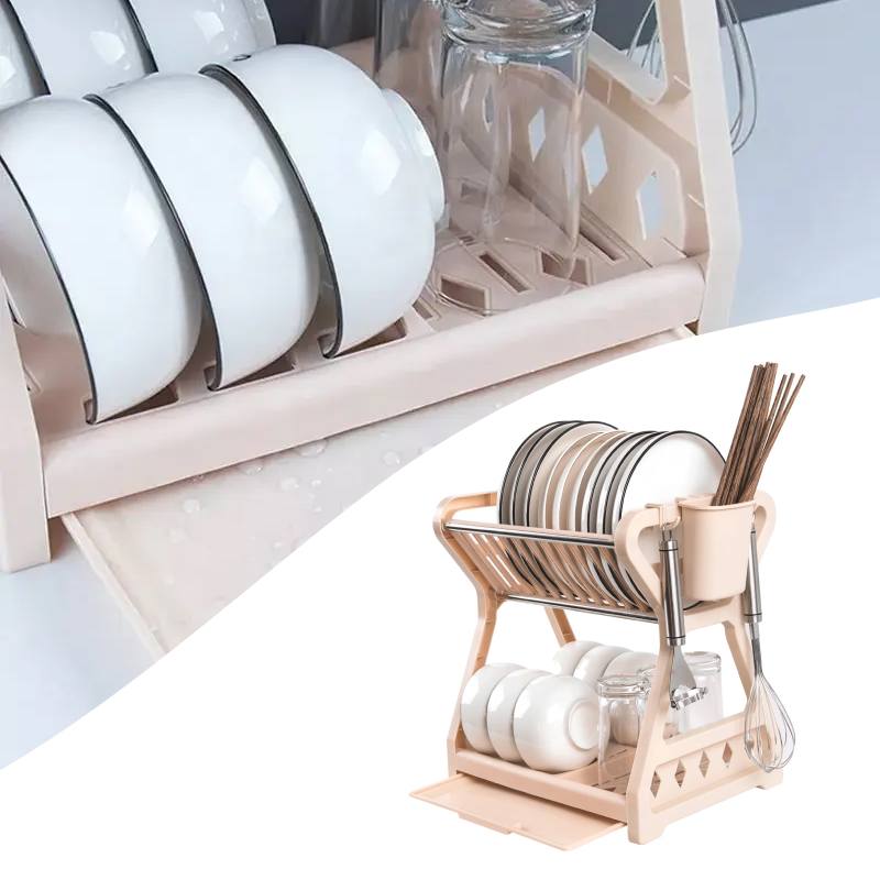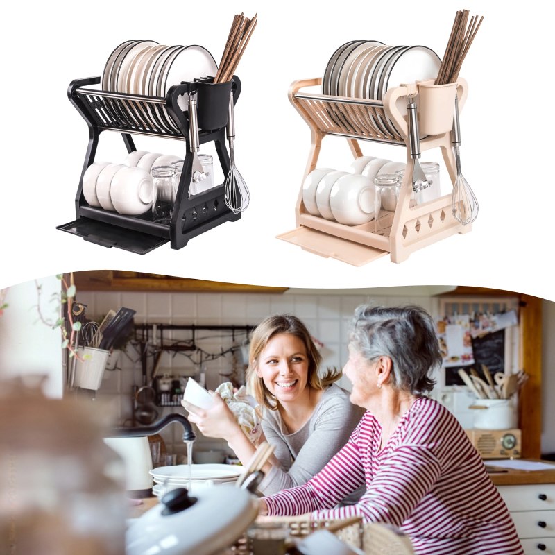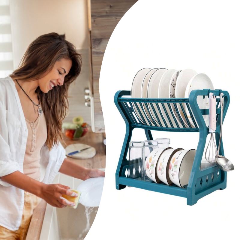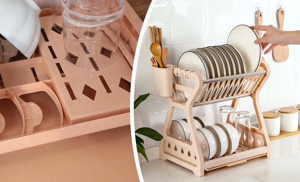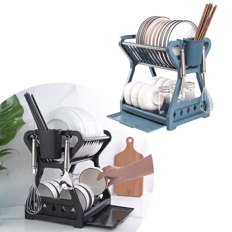 Двухуровневая сушилка для посуды – это универсальная подставка для компактного хранения тарелок, чашек и бокалов, ложек, вилок, ножей и других кухонных аксессуаров.