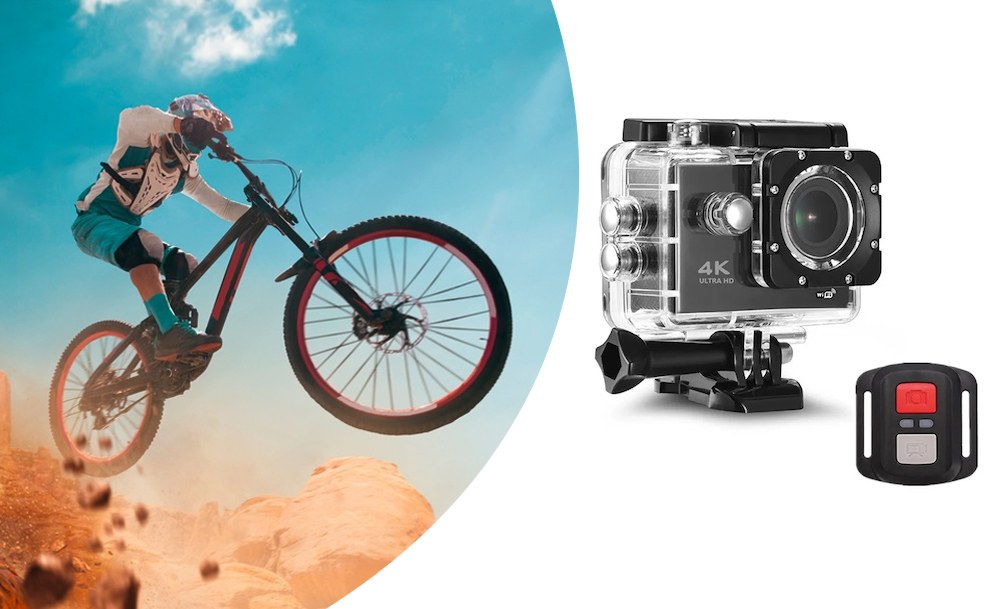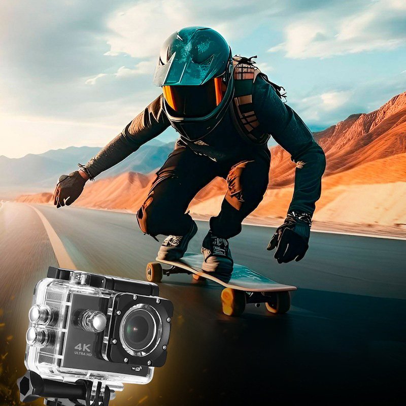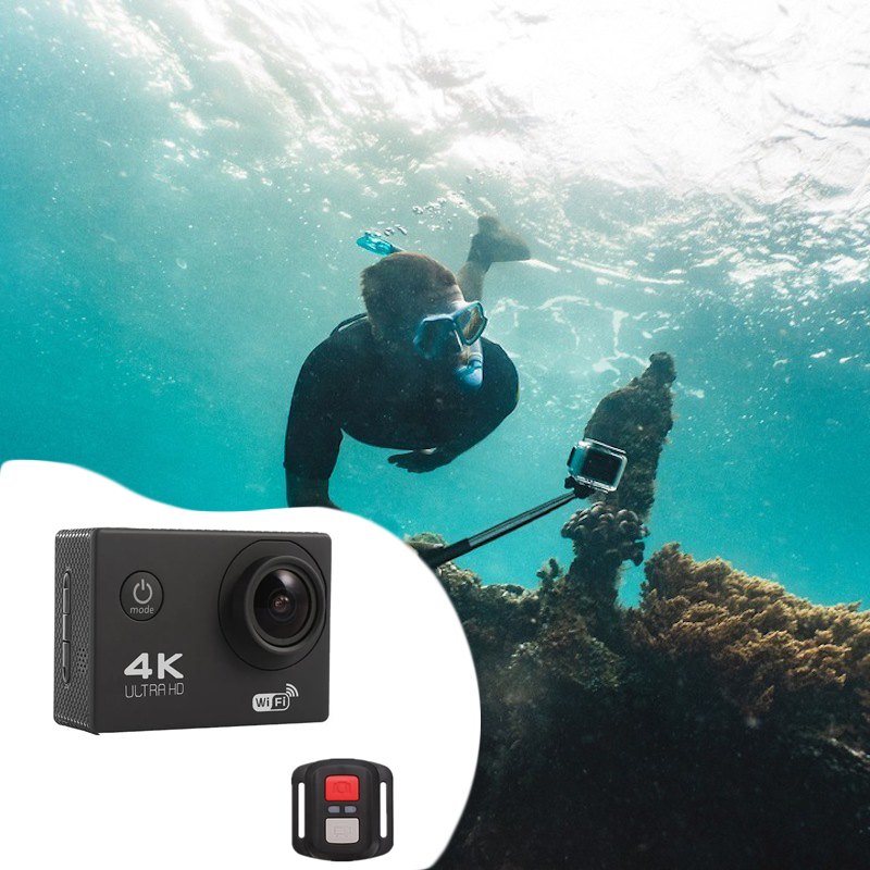 Водонепроницаемая спортивная экшн камера с пультом Sports Cam 4K Wi Fi – это великолепная возможность сохранить яркие впечатления от поездок и путешествий. Камеру можно использовать в любом месте: в помещениях, на улице, стационарно или в движении, а благодаря водонепроницаемому кейсу – даже под водой при погружении до 30 метров.