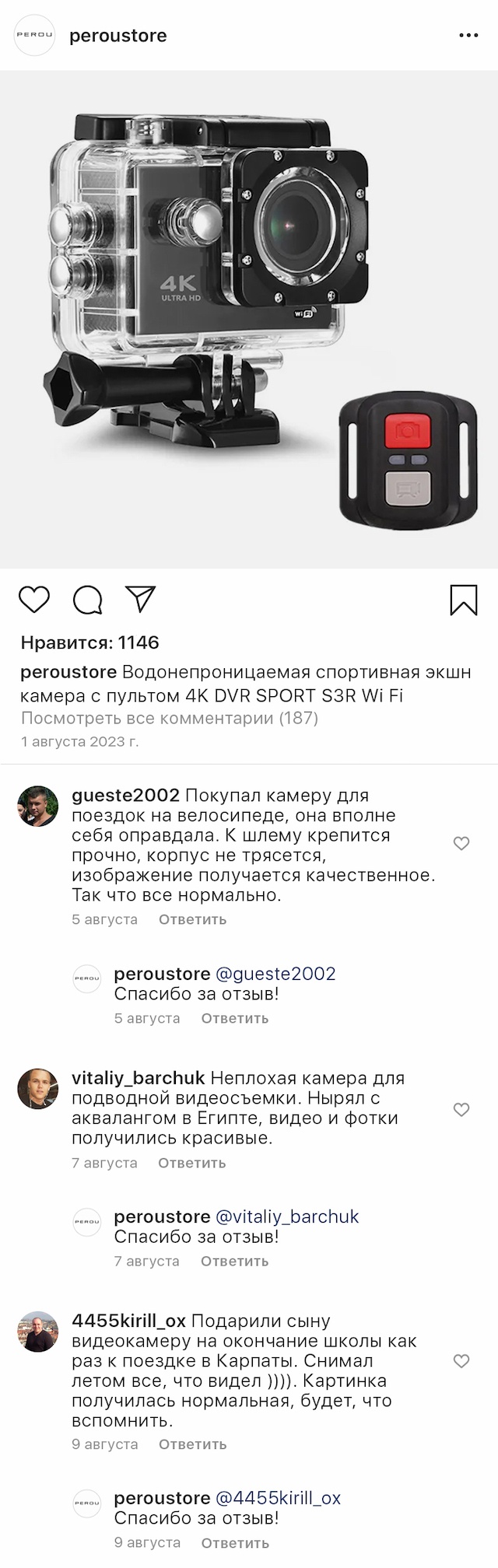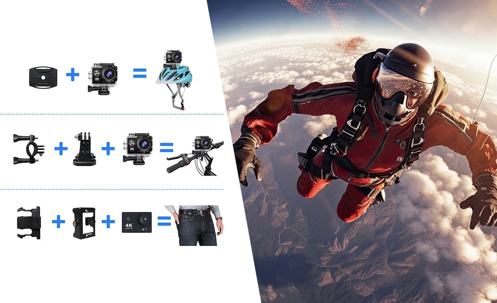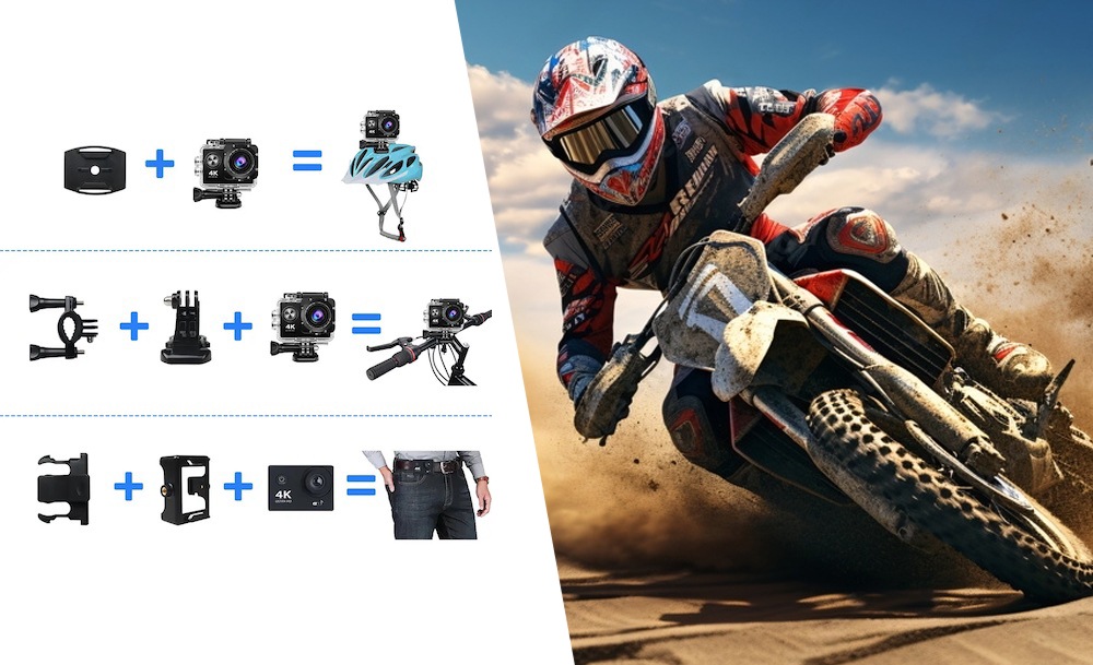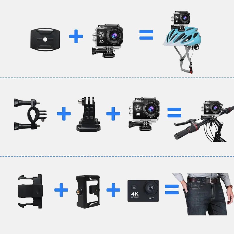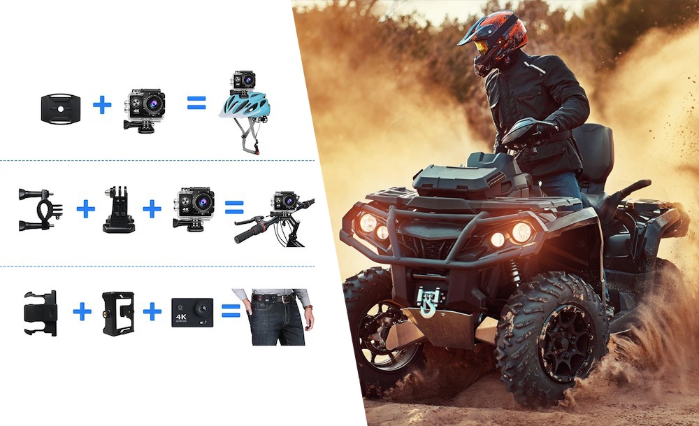 Жидкокристаллический LED-дисплей обеспечивает качественное изображение, а встроенные микрофон и динамик позволят прослушивать аудиоматериал. С помощью креплений камеру можно установить под нужным углом или зафиксировать на голове и делать фото и видеосъемку в любых погодных условиях.