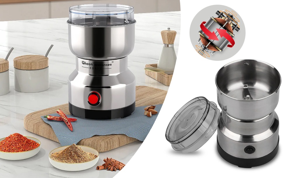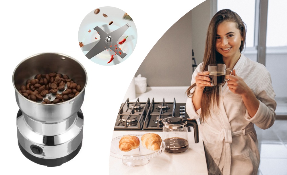 Электрическая кофемолка предлагает быстрое перемола кофейных зерен, чтобы вы могли насладиться свежим и ароматным кофе. Кроме того, устройство можно использовать для измельчения различных ингредиентов, таких как рис, шоколад, специи семян и трав.