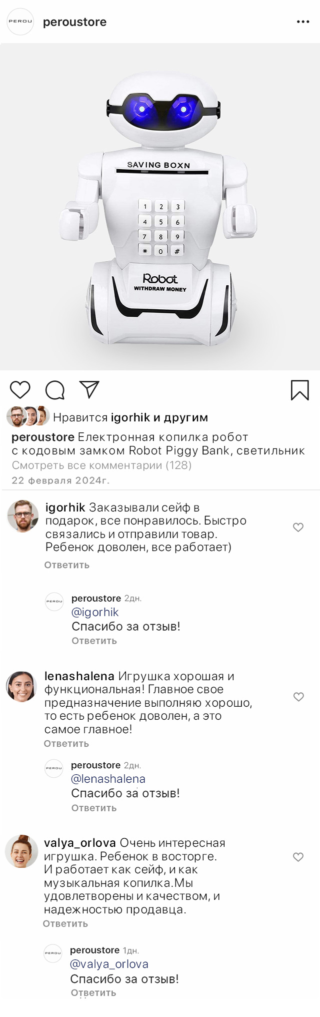 В него можно положить (а точнее он сам их проглатывает) как бумажные деньги, так и монеты, а потом, когда понадобится достать деньги, надо просто ввести свой установленный код и откроется передняя крышка. Ваш ребенок будет в восторге от такого робота и к тому же он будет использовать его как копилку для своих личных денег.