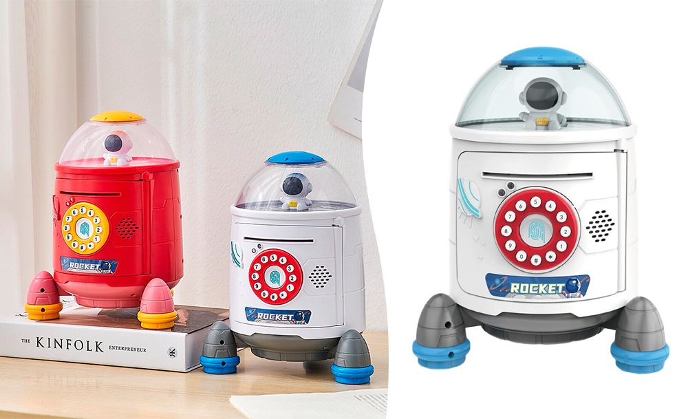 Детская электронная копилка-сейф представлена в 4х вариантах – полицейская машина, космическая ракета, самолет и банкомат. Это не только интересная и оригинальная игрушка, но и отличная возможность познакомить ребенка с накоплением карманных денег и их экономией.