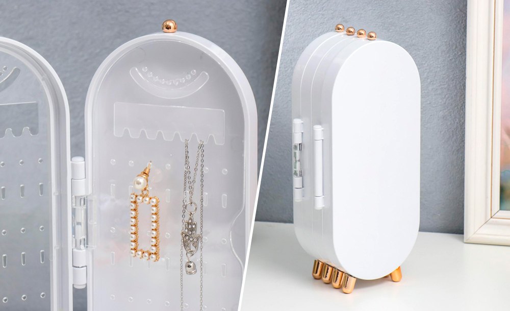 Этот органайзер имеет компактный размер, что делает его идеальным для использования дома или во время поездок. Изготовленный из качественных материалов, он надежно защищает ваши украшения от повреждений и загрязнений. Благодаря стильному дизайну, он станет не только практичным, но и красивым дополнением к вашему интерьеру.