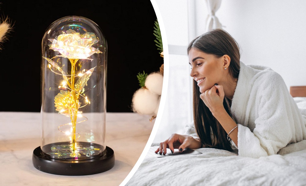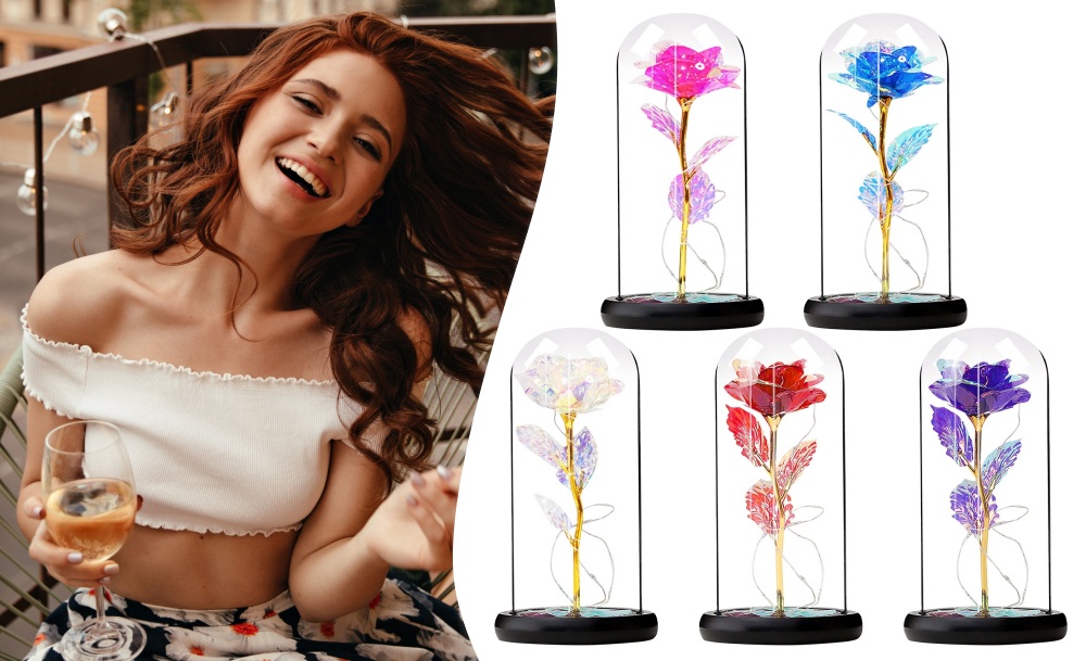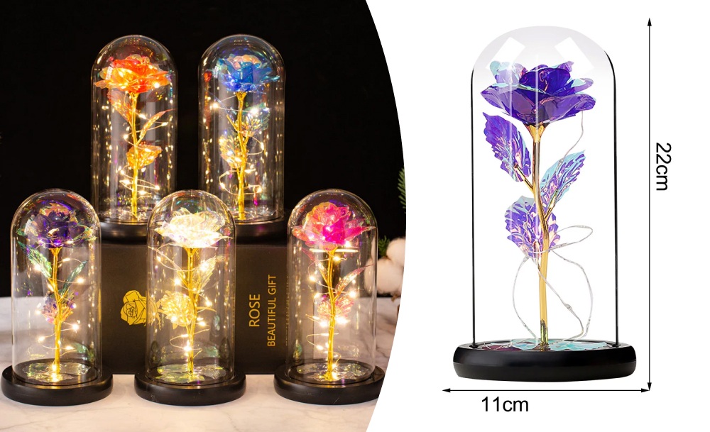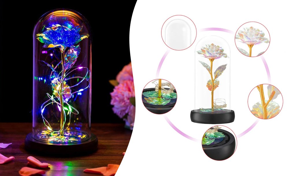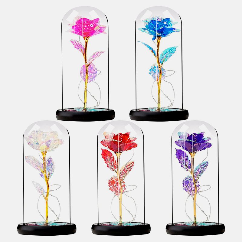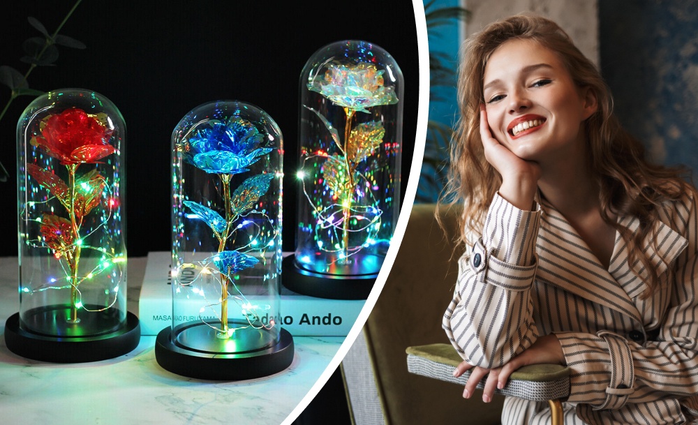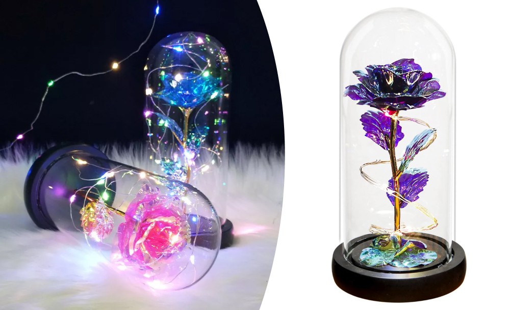 Галактическая роза в стеклянной колбе с LED подсветкой создаст неповторимую атмосферу тепла и уюта, наполнит дом волшебством и романтикой. Изящная роза внутри прозрачной колбы выглядит как настоящая, а мягкая светодиодная подсветка позволит использовать ее как ночник в любом помещении.