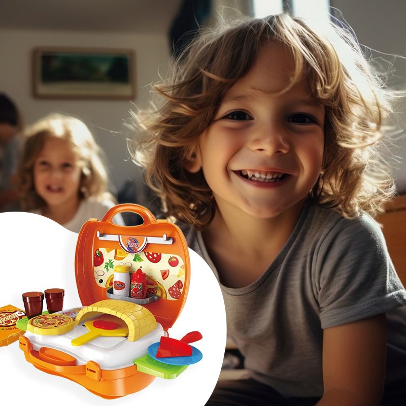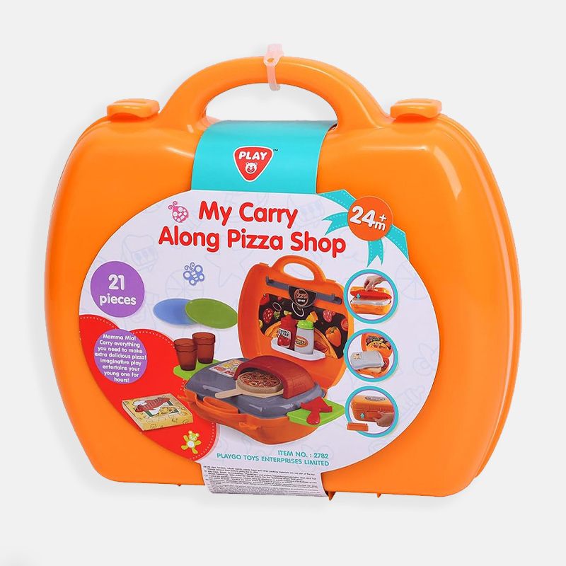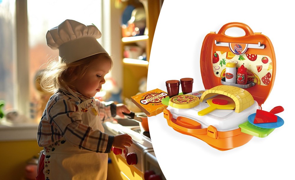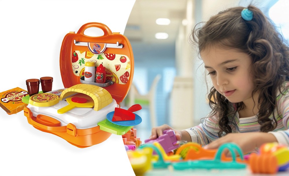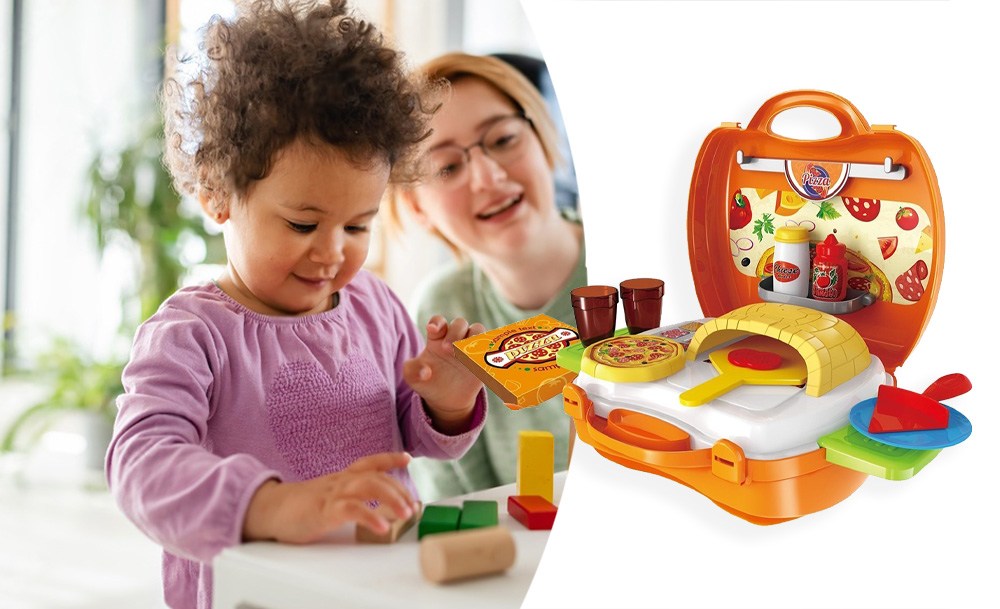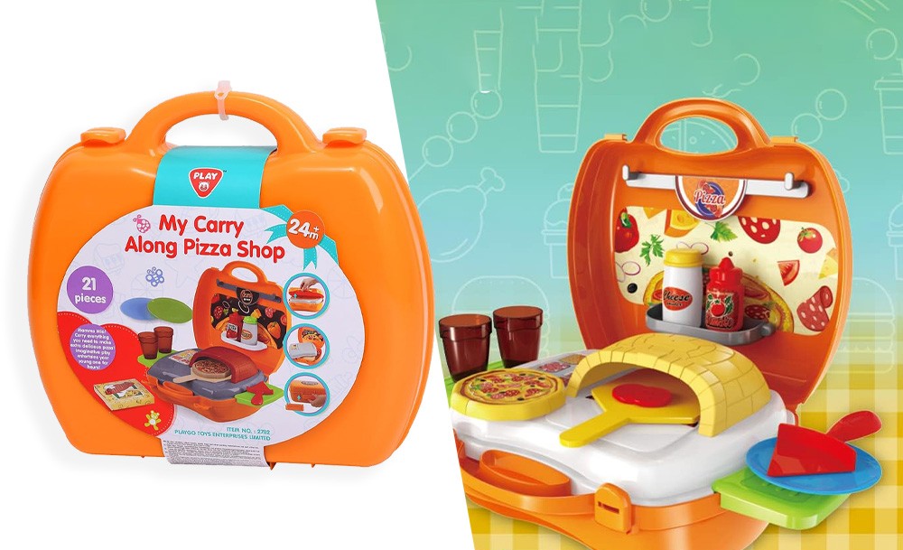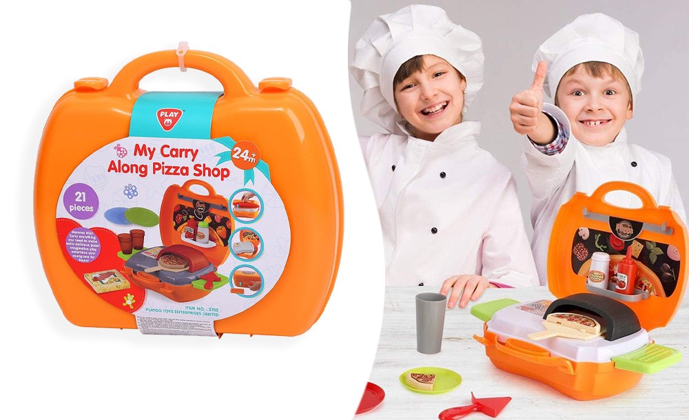 Игровой набор Pizza включает 22 предмета и предназначен для детей, желающих окунуться в мир приготовления вкусных пицц и кулинарных фантазий. Переносная пиццерия собирается в один очень удобный чемоданчик на защелках. В раскрытом виде игра представляет собой небольшую рабочую зону с печью и зоной для хранения продуктов и инструментов. С таким набором ребенок почувствует себя настоящим пиццеолом!