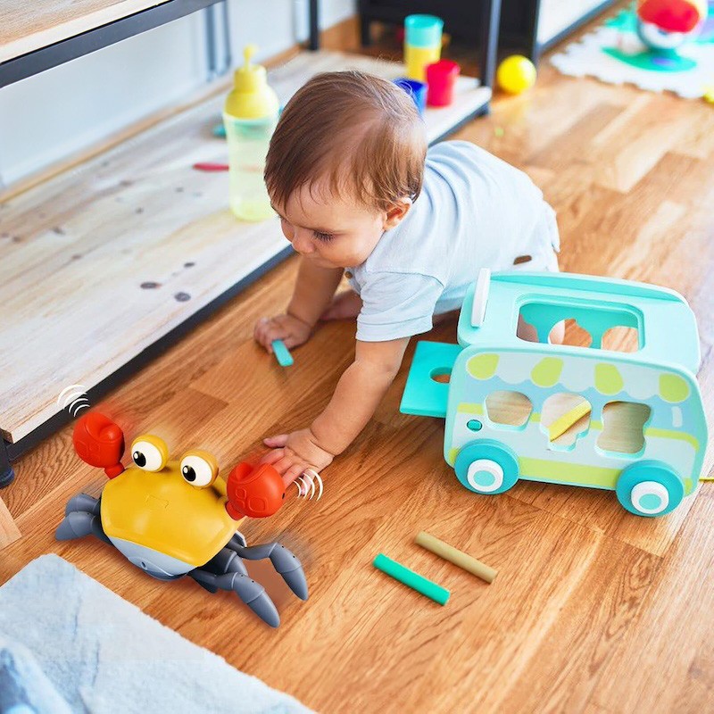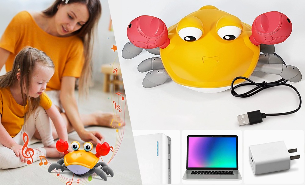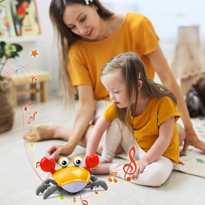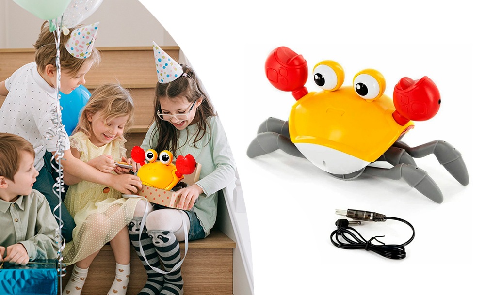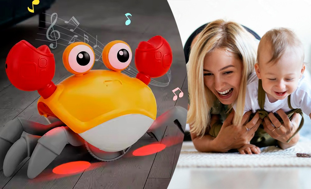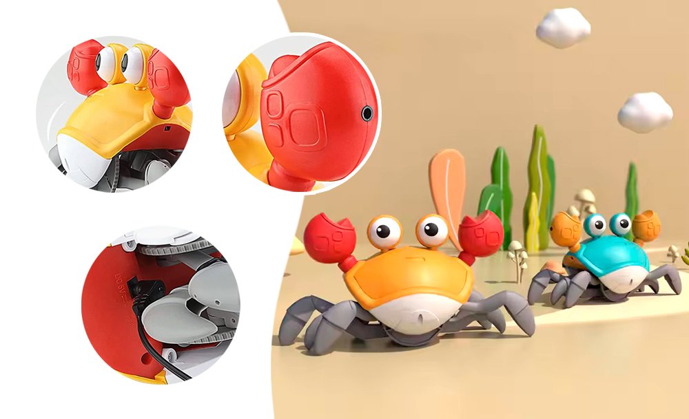 Она передвигается, имитируя движения настоящего краба, и обходит препятствия благодаря встроенным датчикам. Во время движения игрушка исполняет веселые песни, а глаза краба светятся. Маленькому ребенку будет интересно не только наблюдать за игрушкой, но и пытаться её поймать.