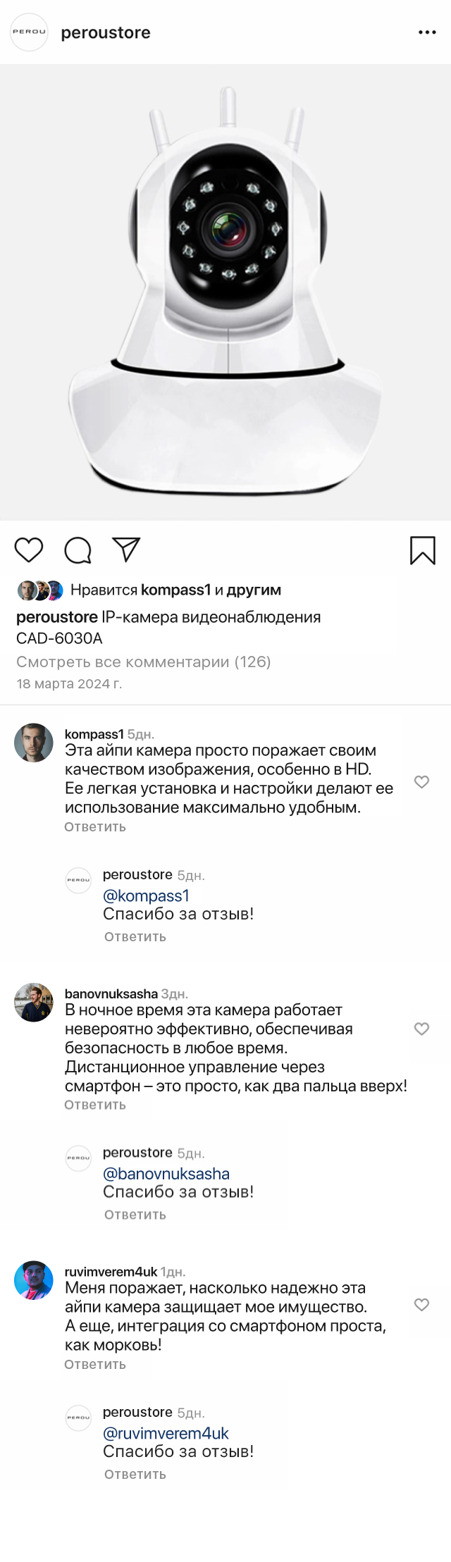 IP-камера видеонаблюдения CAD-6030A – обладает возможностью вращения в горизонтальной и вертикальной плоскости и оснащена встроенным датчиком движения, а также функцией отправки сообщений, которую можно настроить с помощью приложения для мобильных устройств.