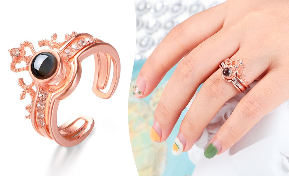 Кольцо с проекцией 2 в 1 – это оригинальный подарок, который можно носить как вместе, так и раздельно. Уникальная особенность этого кольца в надписи «Я Люблю Тебя», которая проявляется на разных языках мира, если поместить его в поток света. Регулируемый разъем позволяет носить кольцо на пальце любого размера. Изделие выполнено из медицинского гипоаллергенного титана с прочным трехслойным напылением серебра и розового золота.