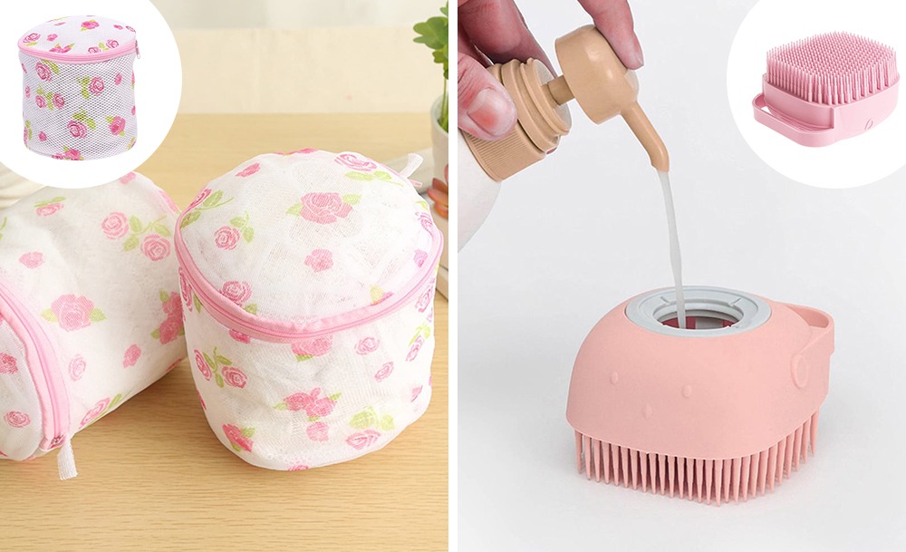 Силиконовая мочалка и силиконовая массажная щетка бережно очищают и тонизируют кожу, улучшают кровообращение. Контейнер для деликатной стирки помогает защитить одежду и сохранить форму белья.