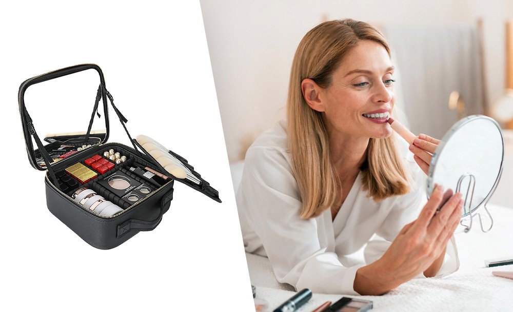 Застежка на молнии обеспечивает легкий доступ к Вашей косметике, а встроенное зеркало делает этот кейс идеальным для моментальных коррекций макияжа. Наши кейсы созданы, чтобы помочь вам всегда оставаться великолепными и уверенными в любой ситуации.