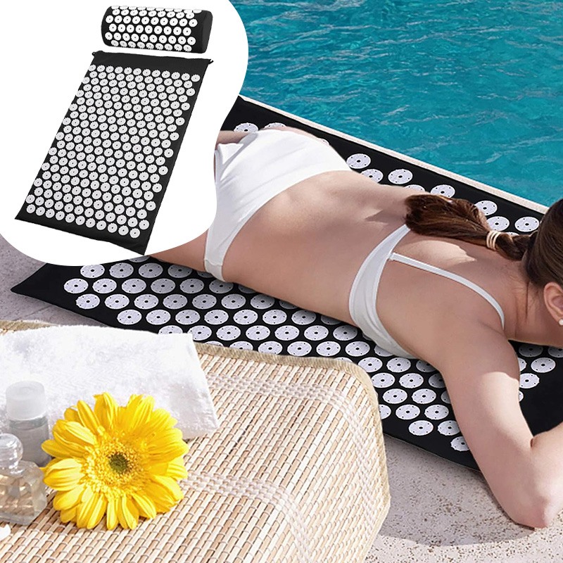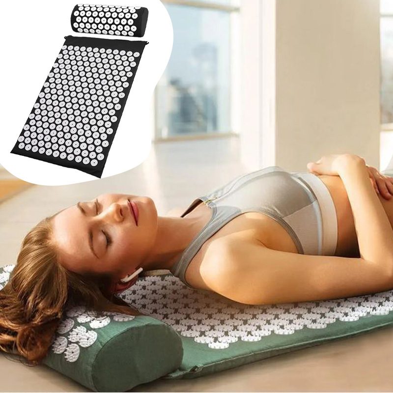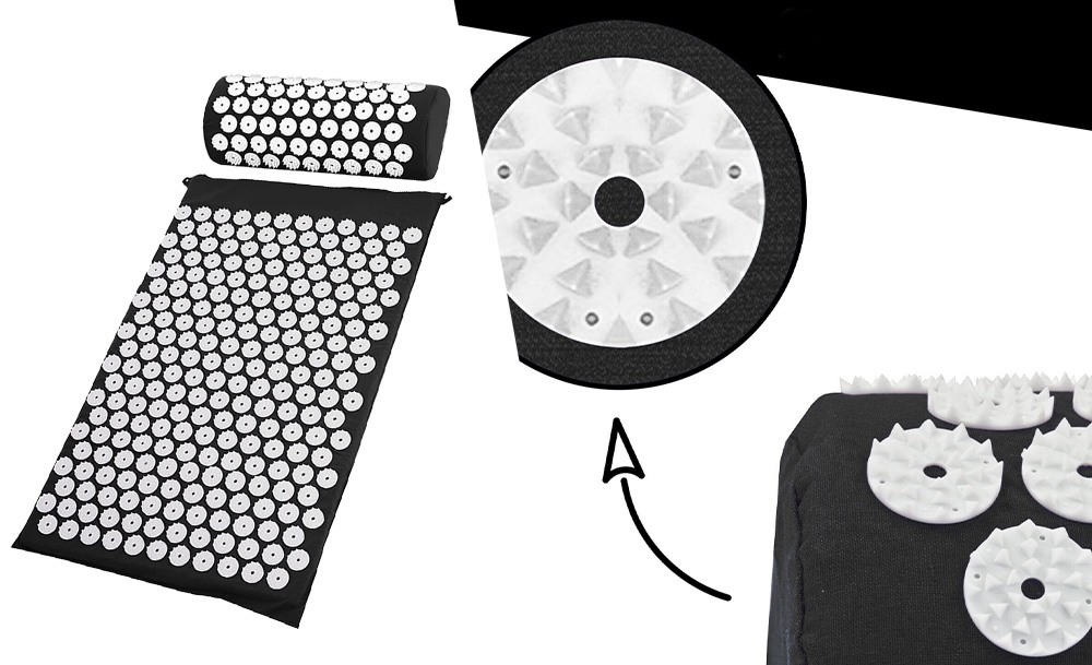 Коврик и подушка покрыты тысячами иголок чтобы воздействовать на рефлексогенные зоны для снятия напряжённости и усталости, восстановления всего тела, улучшения настроения и придания организму энергии и жизненных сил.