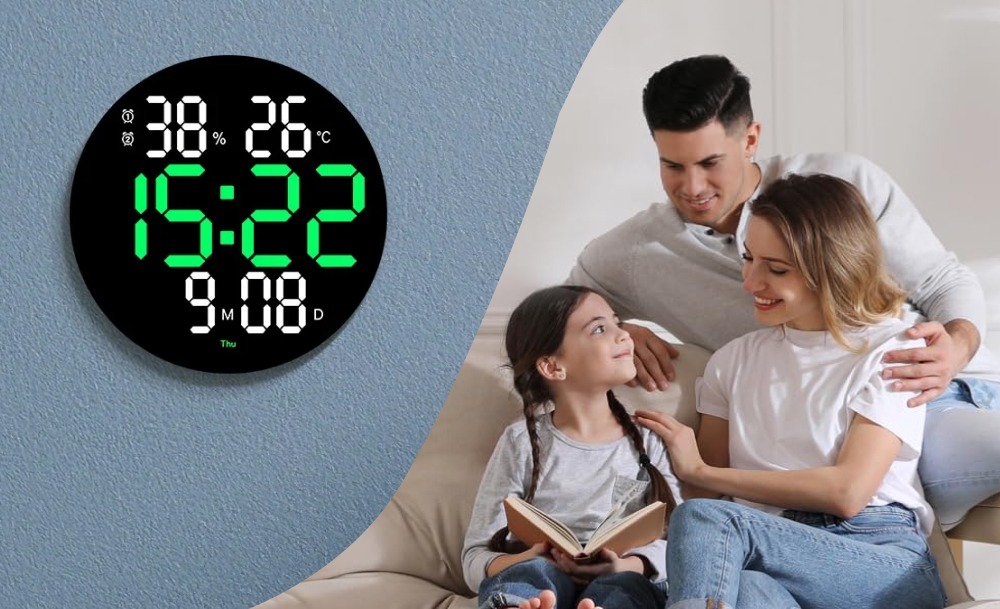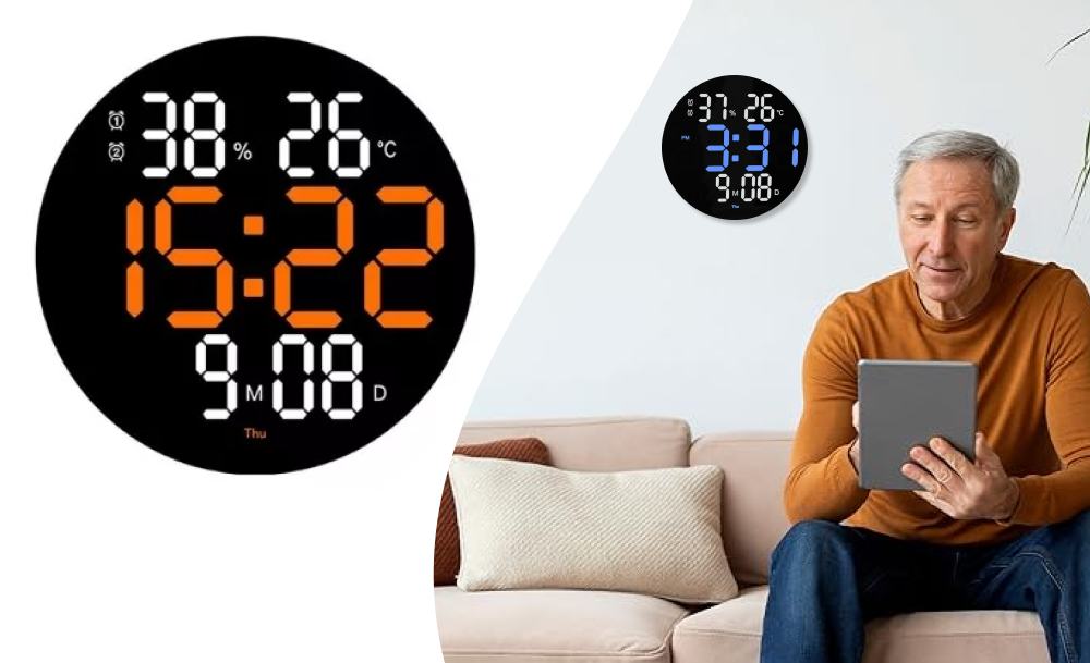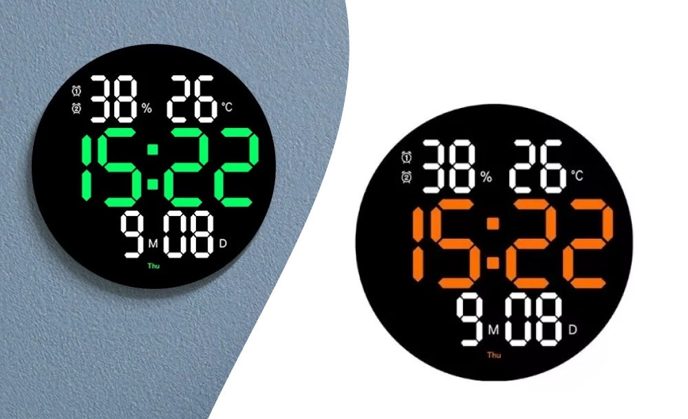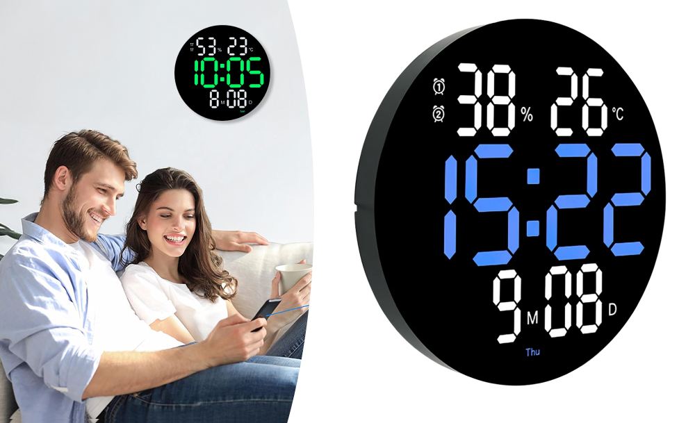 Круглые настенные часы 3813L, выполненные в черном корпусе с яркой подсветкой больших цифр, обеспечивают удобство использования в любом интерьере. Устройство одновременно показывает время, дату, день недели, температуру и влажность воздуха, позволяя всегда быть в курсе ключевой информации.