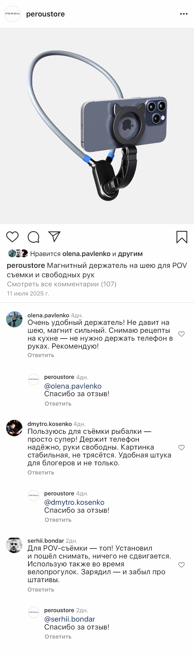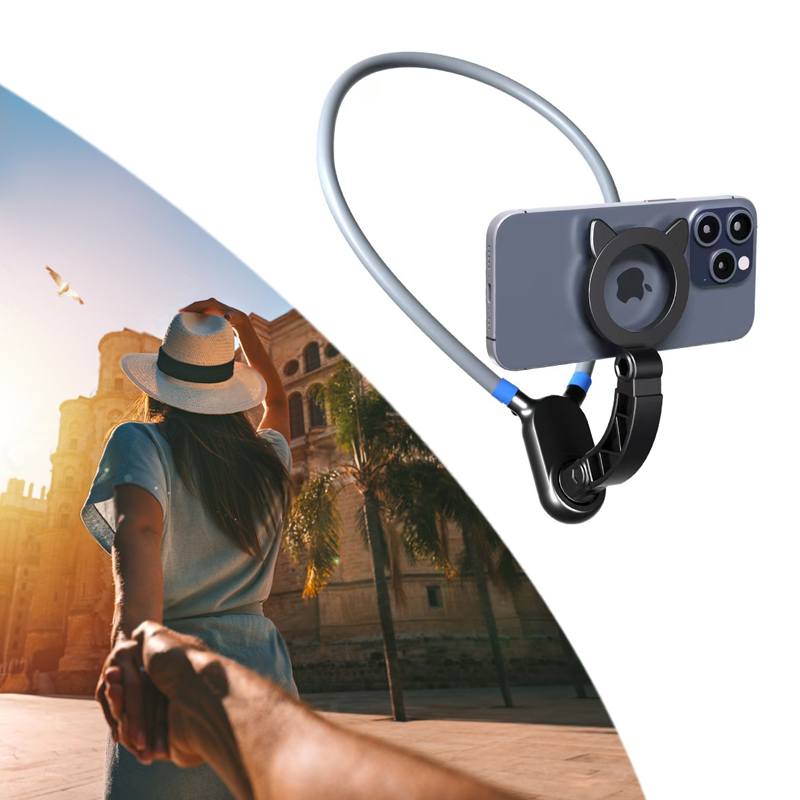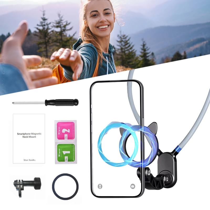 Магнитный держатель на шею — это удобное решение для съёмки от первого лица без лишних усилий. Просто прикрепите телефон с помощью магнита, наденьте крепление на шею — и ваши руки остаются свободными. Идеально для видеоблогов, стримов, готовки, мастер-классов или активного отдыха.