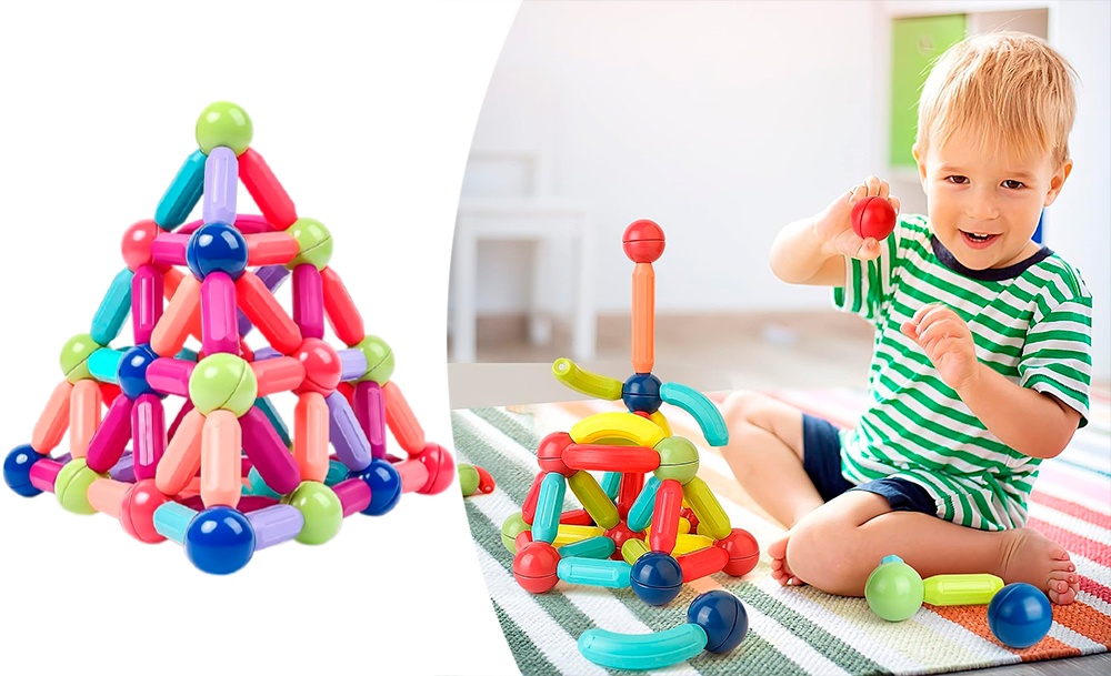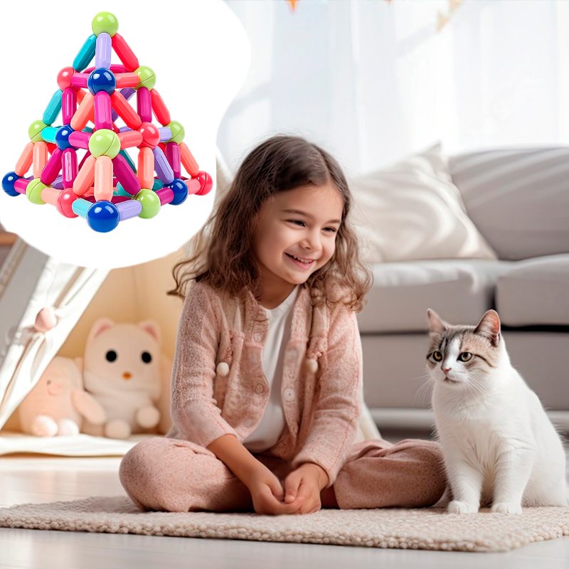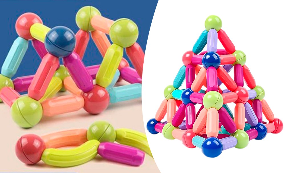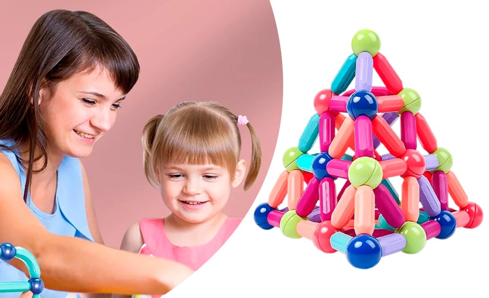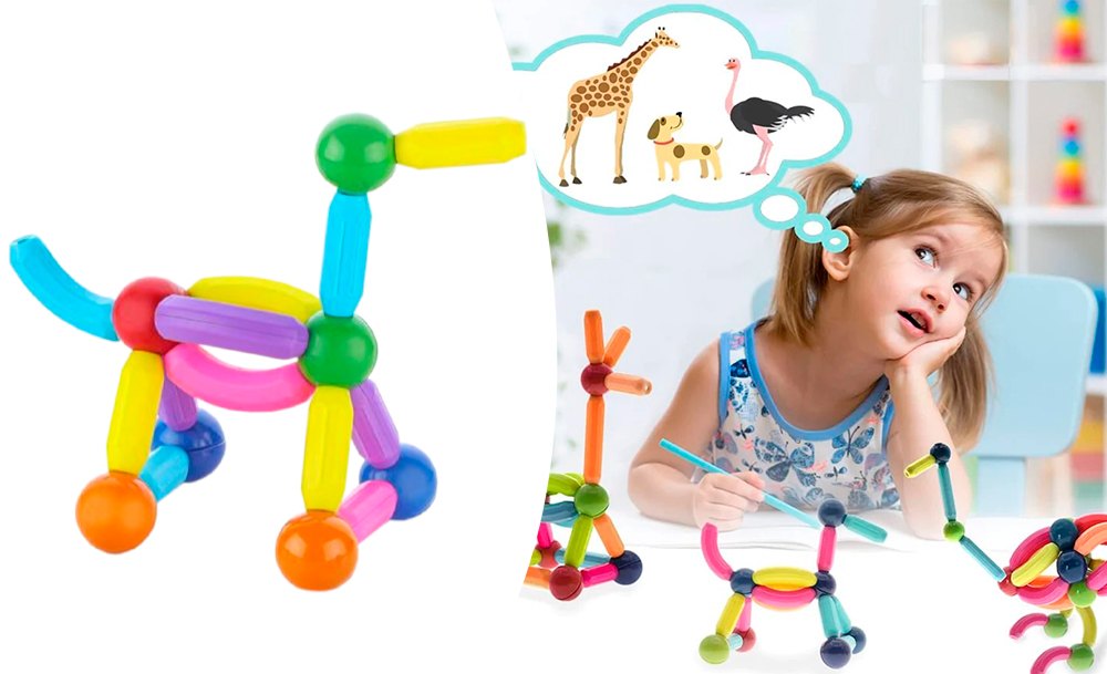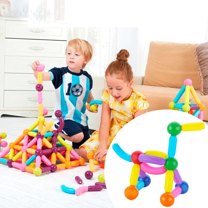 Магнитный конструктор в чемоданчике на 36 деталей идеальный выбор для развлечения и обучения вашего малыша. Из деталей можно составлять все, что придумает ребенок, тренировать логику, моторику и фантазию. Палочки сделаны из высококачественного пластика, а магниты надежно спрятаны внутри.