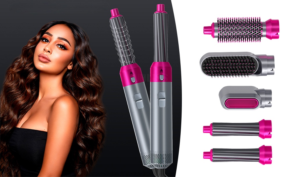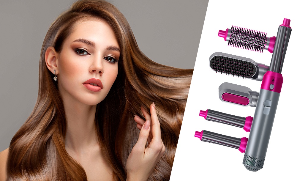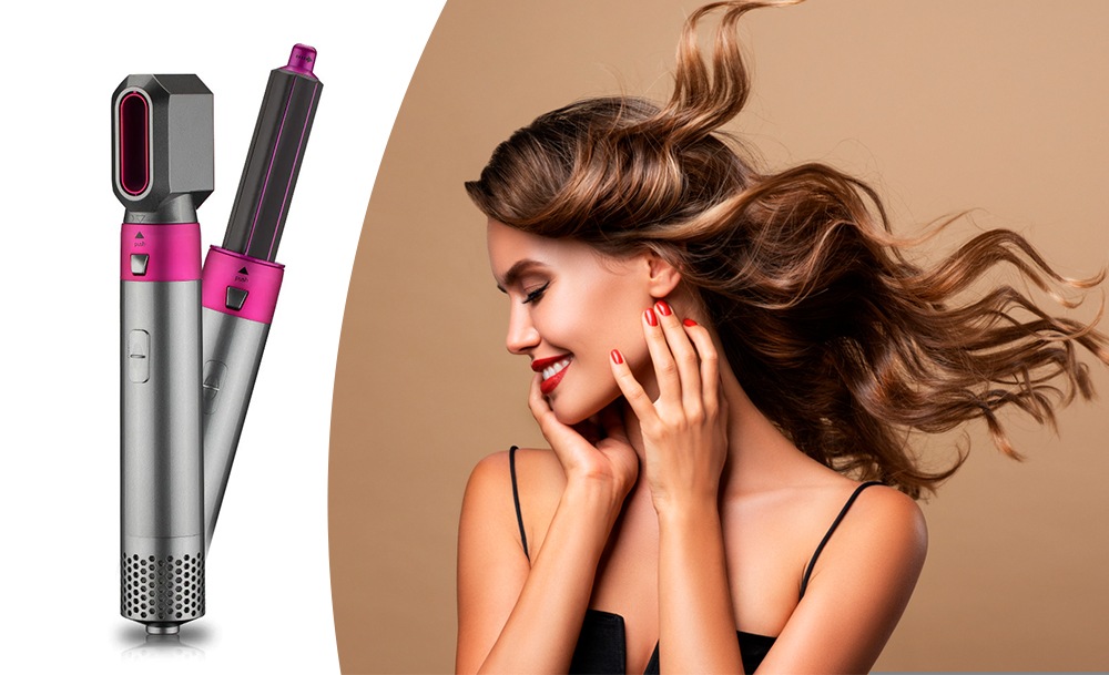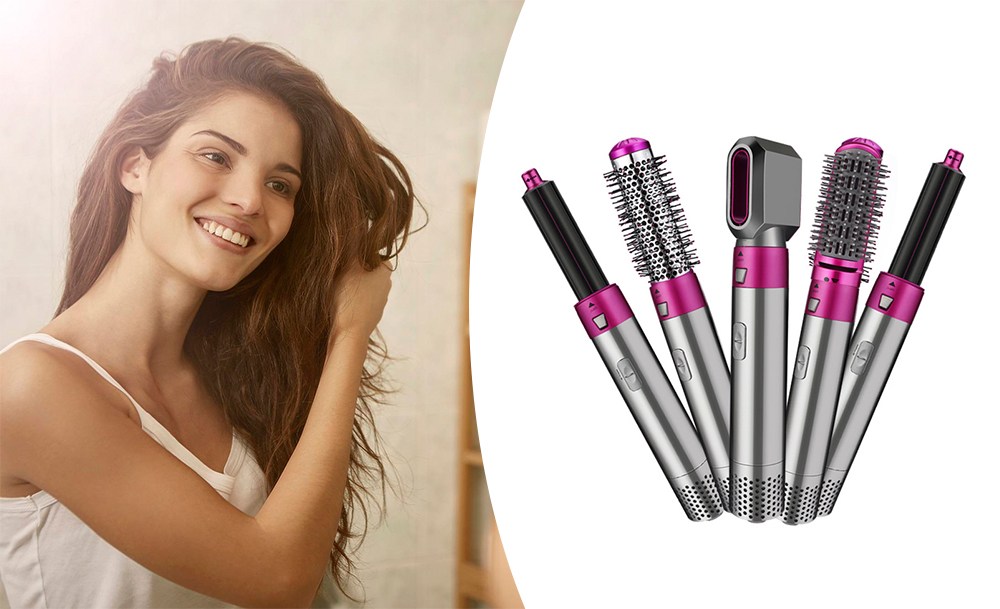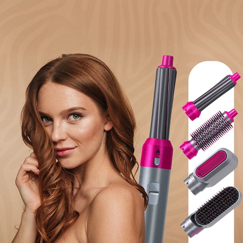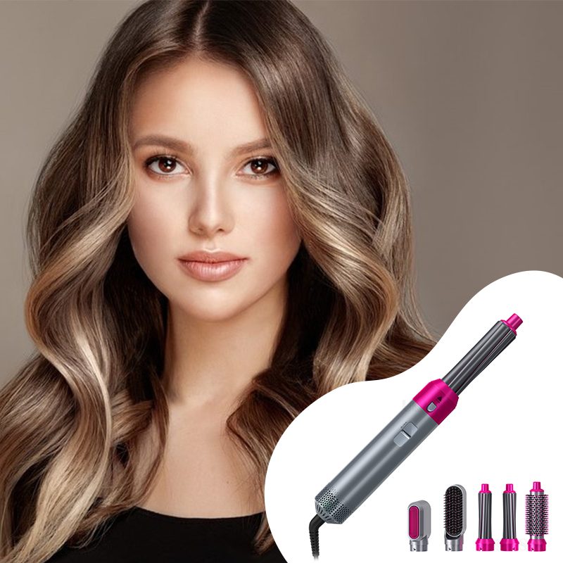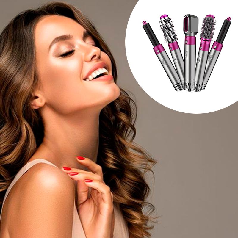 Мультистайлер 5 в 1 – это профессиональный прибор для ухода за волосами и создания элегантного образа. Фен оснащен пятью съемными насадками: пре-стайлинг бережно высушивает волосы, мягкая щетка выпрямляет и разглаживает, 2 цилиндрических плойки создают объемные локоны, щетка-брашинг придает неповторимый объем у корней.