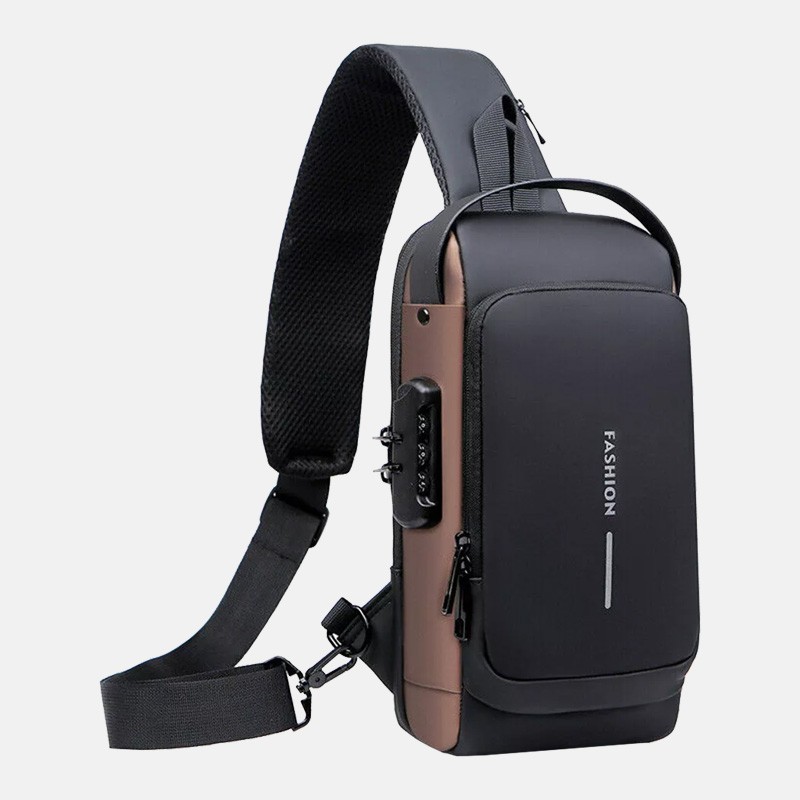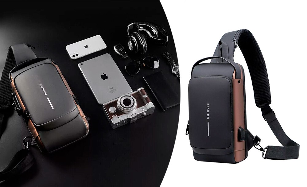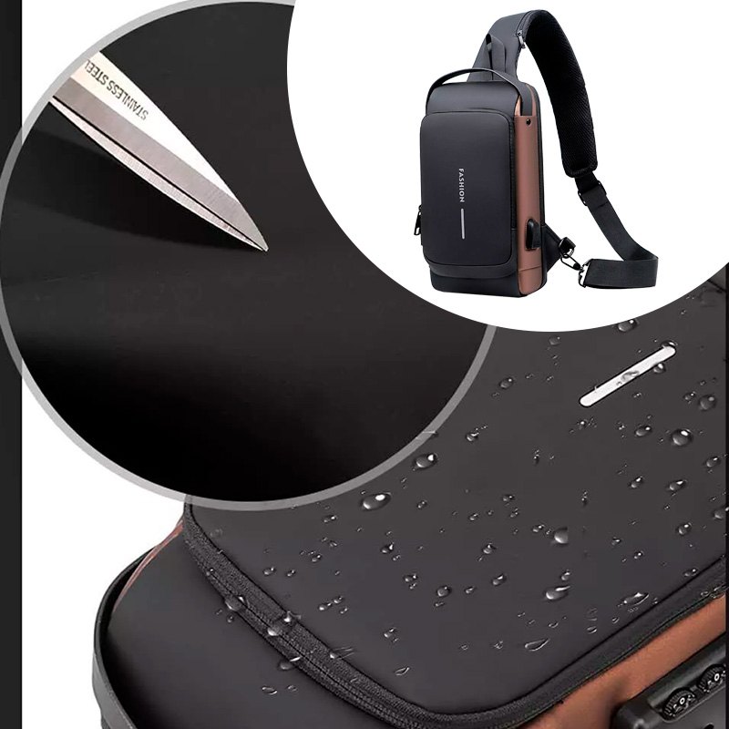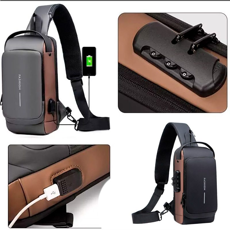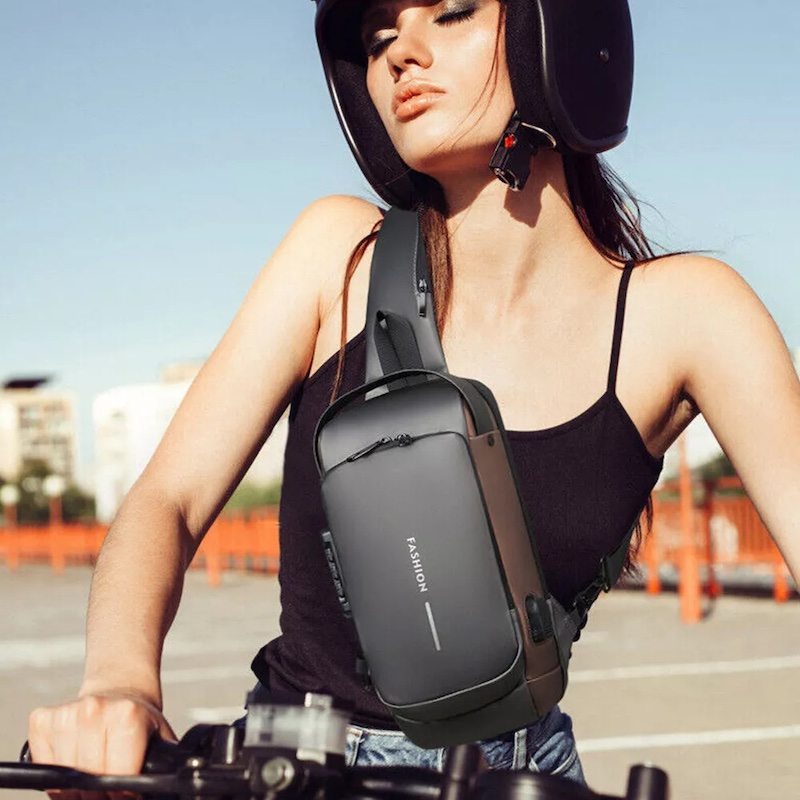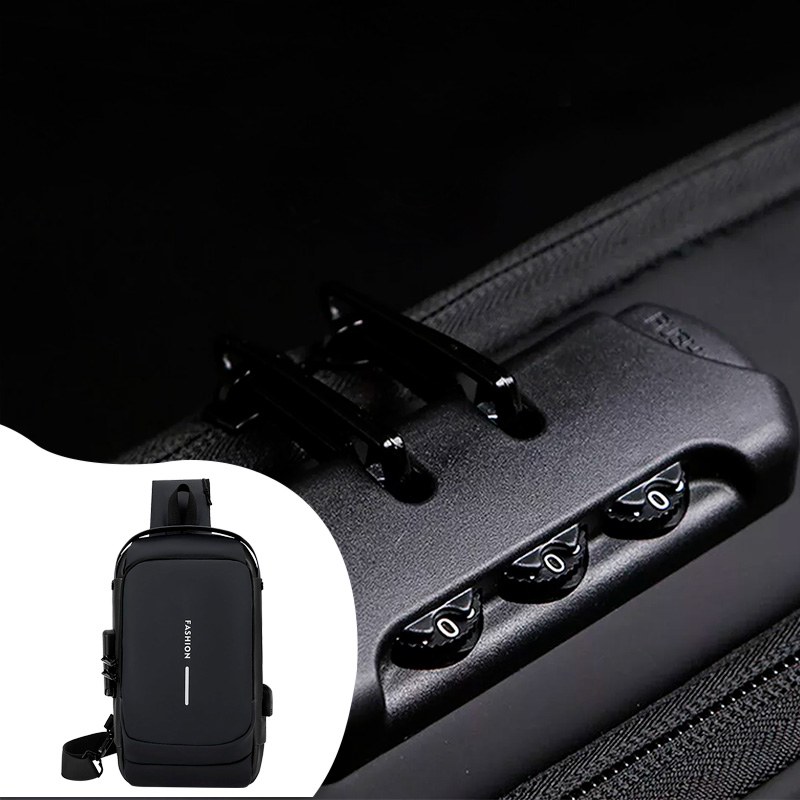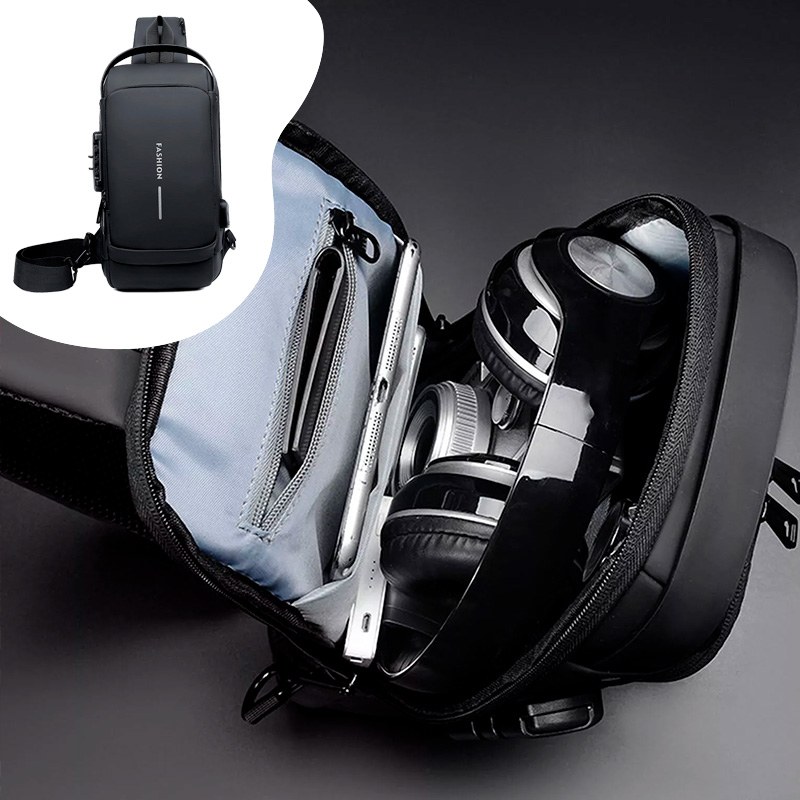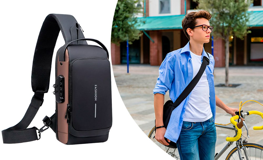 На задней части нагрудной сумки также есть потайной карман на молнии, сбоку карман на молнии для ключей, а на широкой эргономичной лямке, регулируемой по длине и углу основания, есть карман клапана быстрого доступа для пластиковой карты и очков.