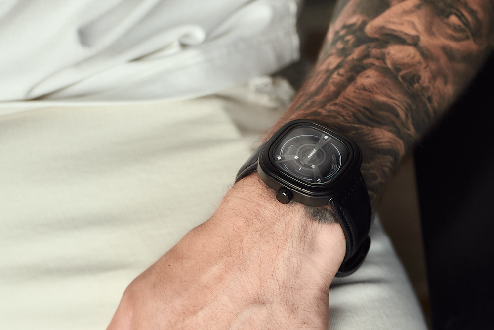 Циферблат оснащен полой поворотной пластиной с календарем на каждый день, за счет чего часы выглядят неординарно и креативно. Кварцевый механизм отличается высокой точностью и качеством, а ремешок из натуральной кожи удобно и прочно удерживает часы на руке. Корпус из ударопрочных и водостойких материалов обеспечивает практичность и надежность.