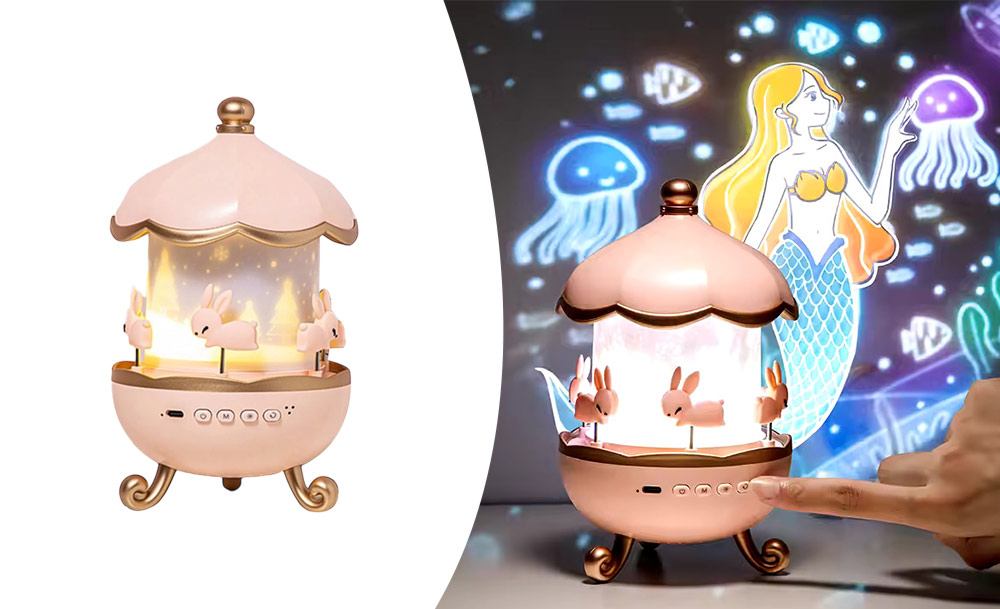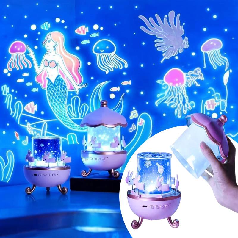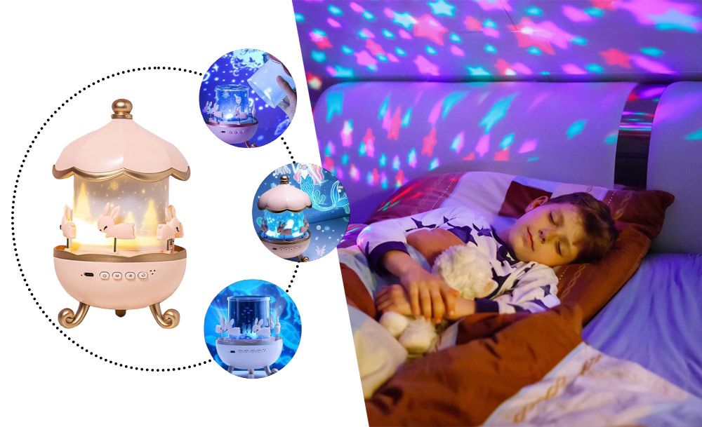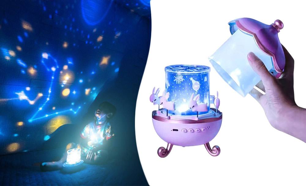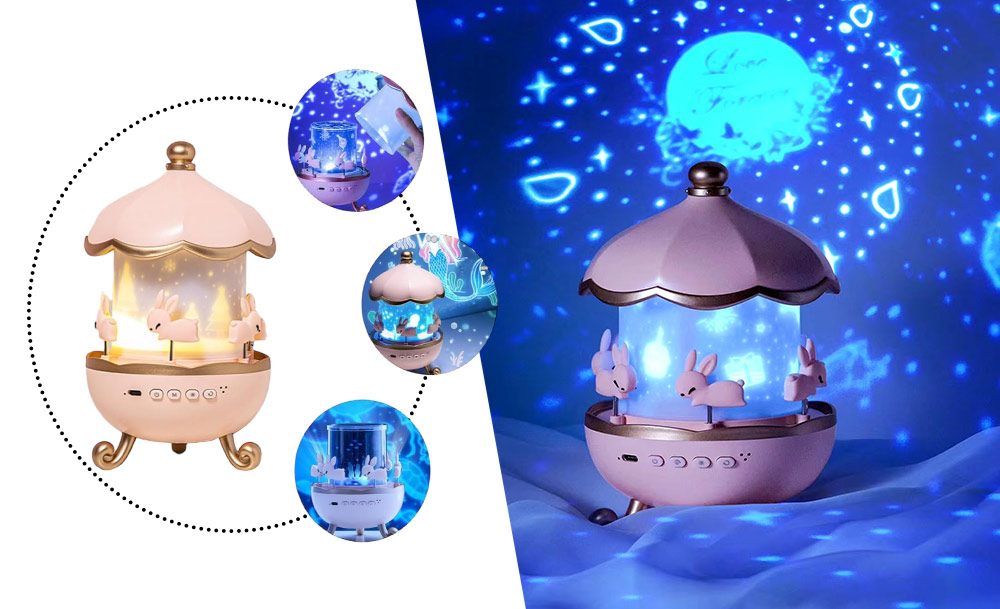 Светильник-ночник LED «Карусель зайчиков», 12 мелодий + Bluetooth – проектор звездного неба с проекциями превращает любое помещение в волшебное космическое пространство. С помощью USB-подключения, вы сможете наслаждаться завораживающими звездными узорами и планетами, создавая уникальную атмосферу для расслабления и сна.