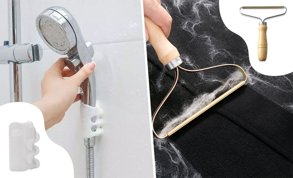 Прибор для удаления катышков – любимый плед, пальто и свитер будут выглядеть как новые! Накладки для газовой плиты и силиконовый держатель отлично дополнят интерьер вашей кухни и ванной облегчат уход. Щетка для мытья стаканов и щетка с дозатором для мыла превратят мытье посуду в быстрый и приятный процесс.