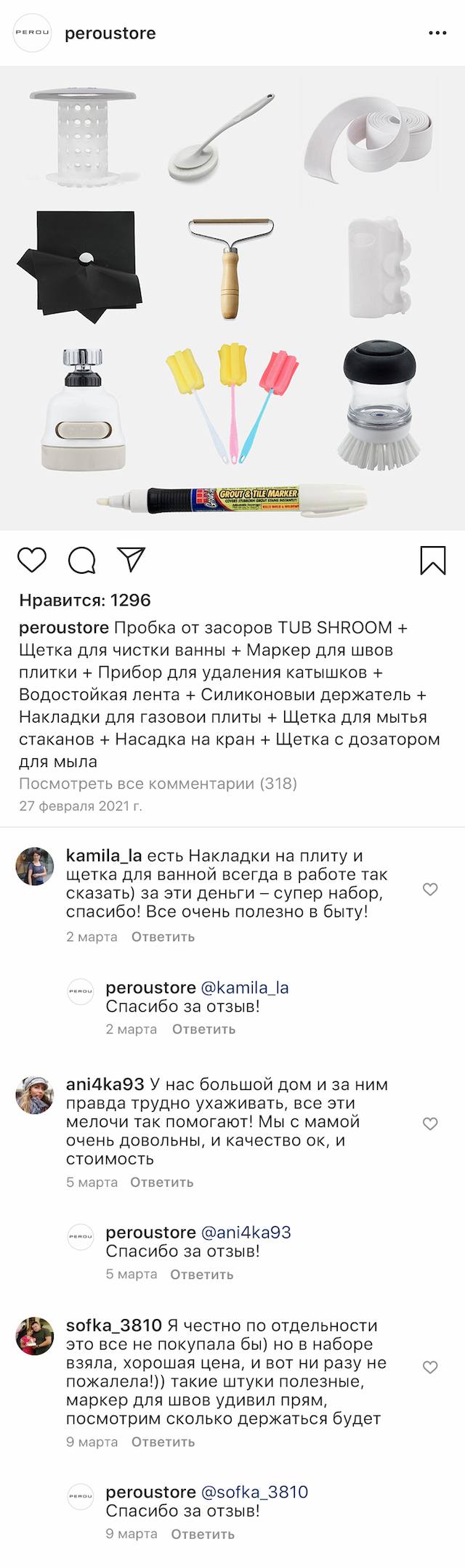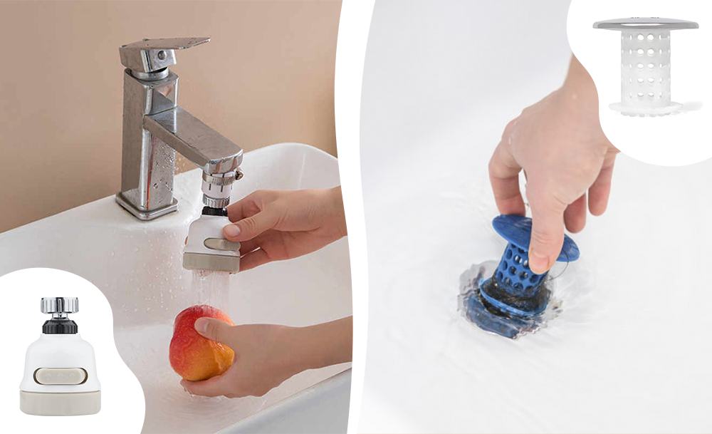Пробка от засоров поможет избежать засорения слива. Насадка на кран для экономии воды. Самоклеющаяся лента из силикона изолирует стык ванны и плитки от влаги. Щетка для чистки ванны позволяет безопасно удалить грязь, налет и другие загрязнения. Маркер карандаш мгновенно вернет швам между плиткой первоначальный вид.