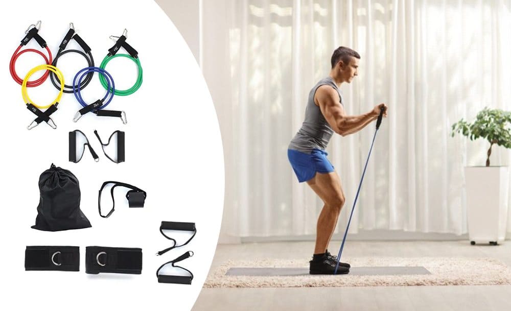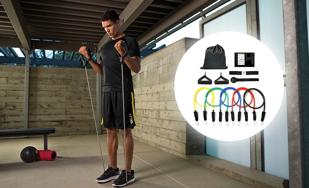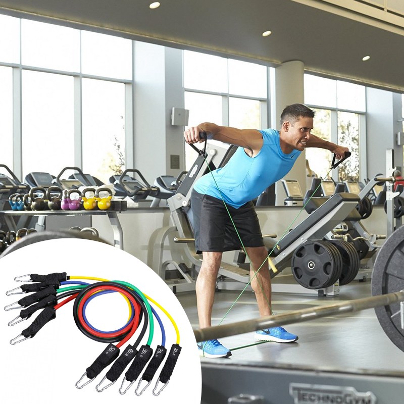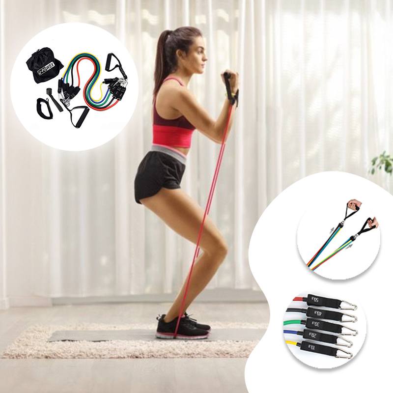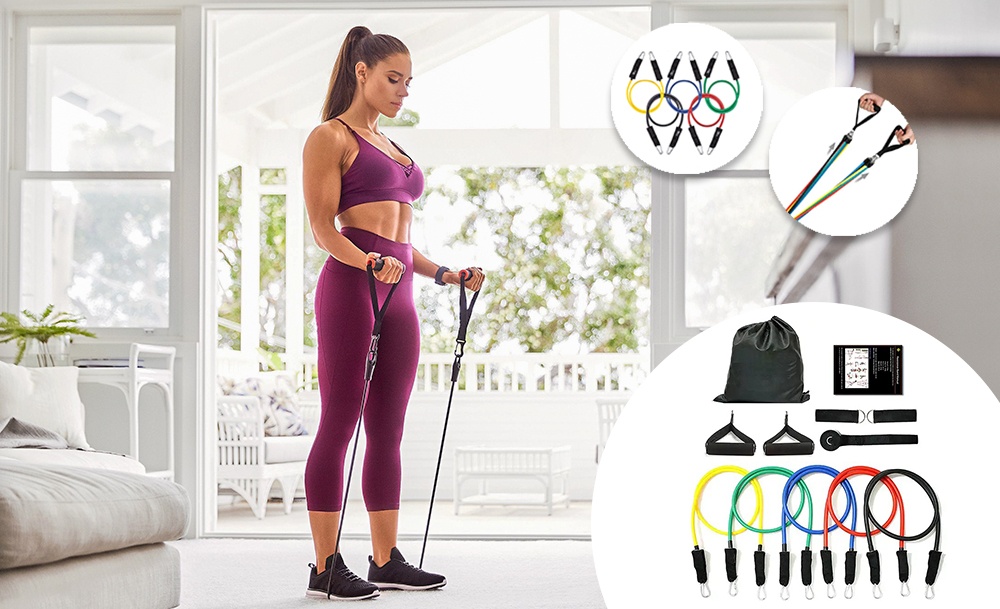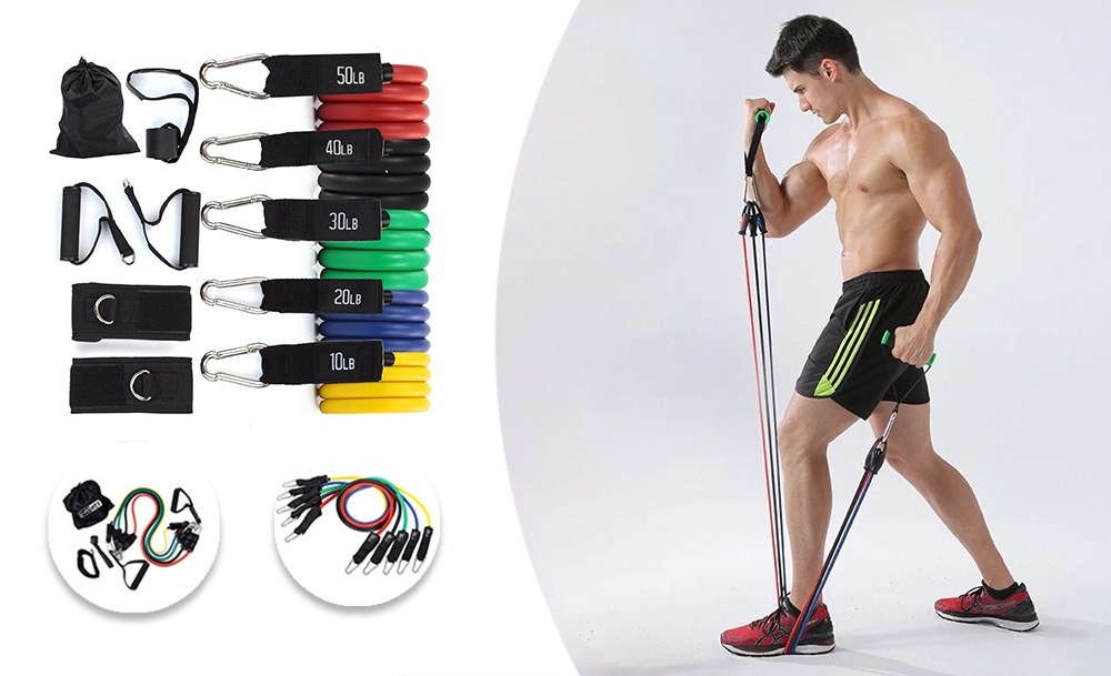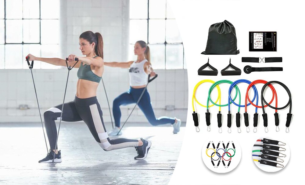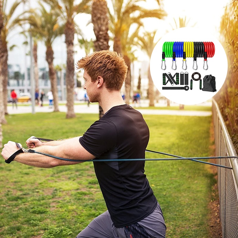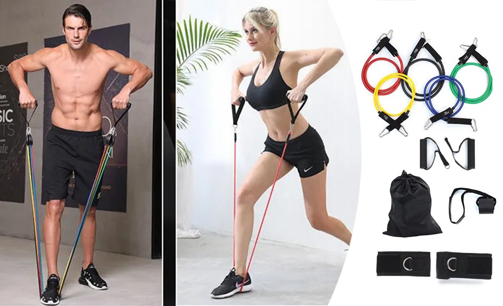 Набор трубчатых эспандеров для фитнеса состоит из пяти высококачественных латексных жгутов (длинной 110 см); двух ручек из пены; двух бретелек, одного дверного анкера. Набор имеет очень широкое применение, усиливая эффективность каждой тренировки. В частности, идеально подходит для наращивания мышечной массы, похудения, а также для спортивных растяжек после силовых нагрузок и т. п.