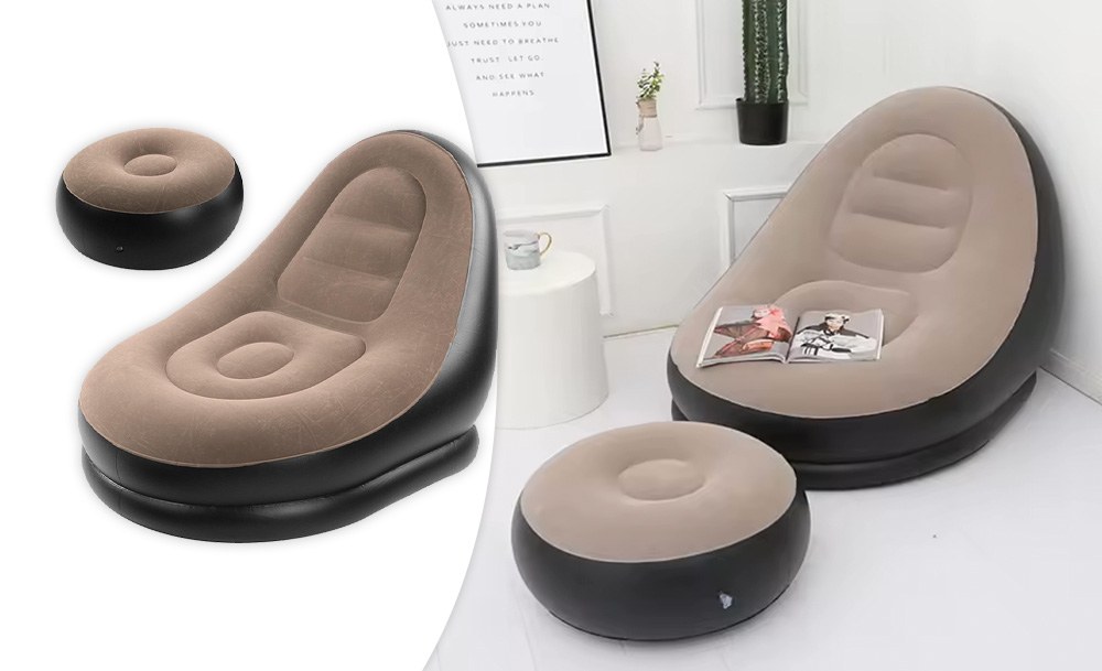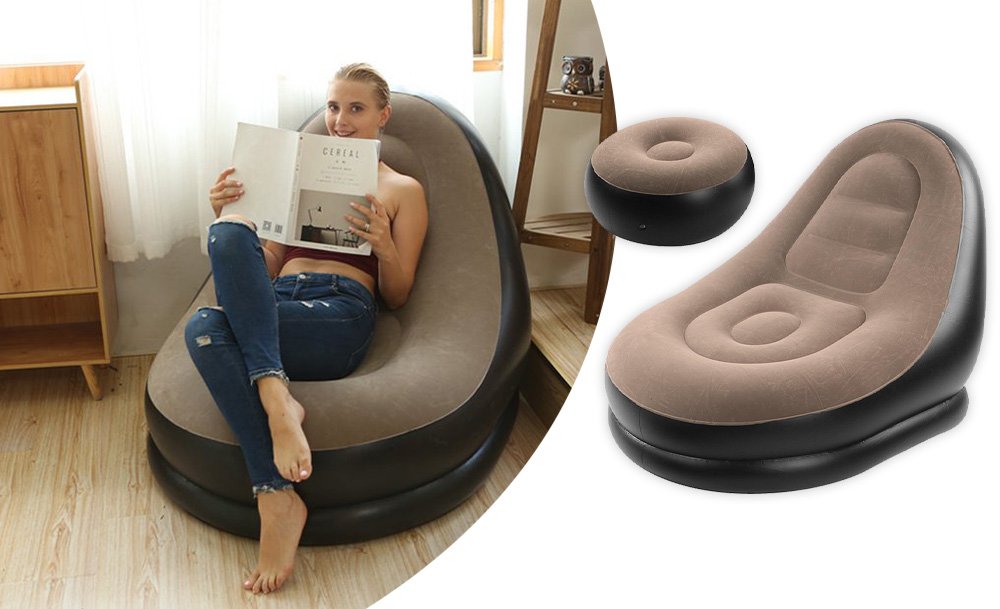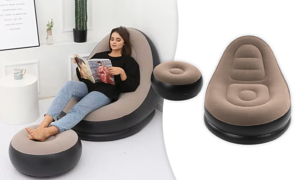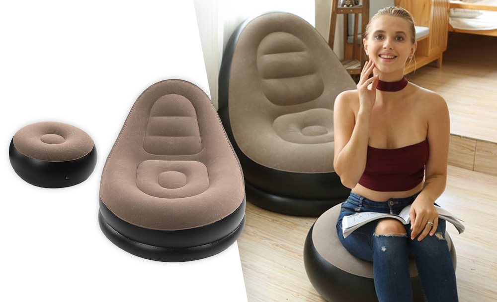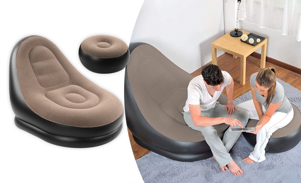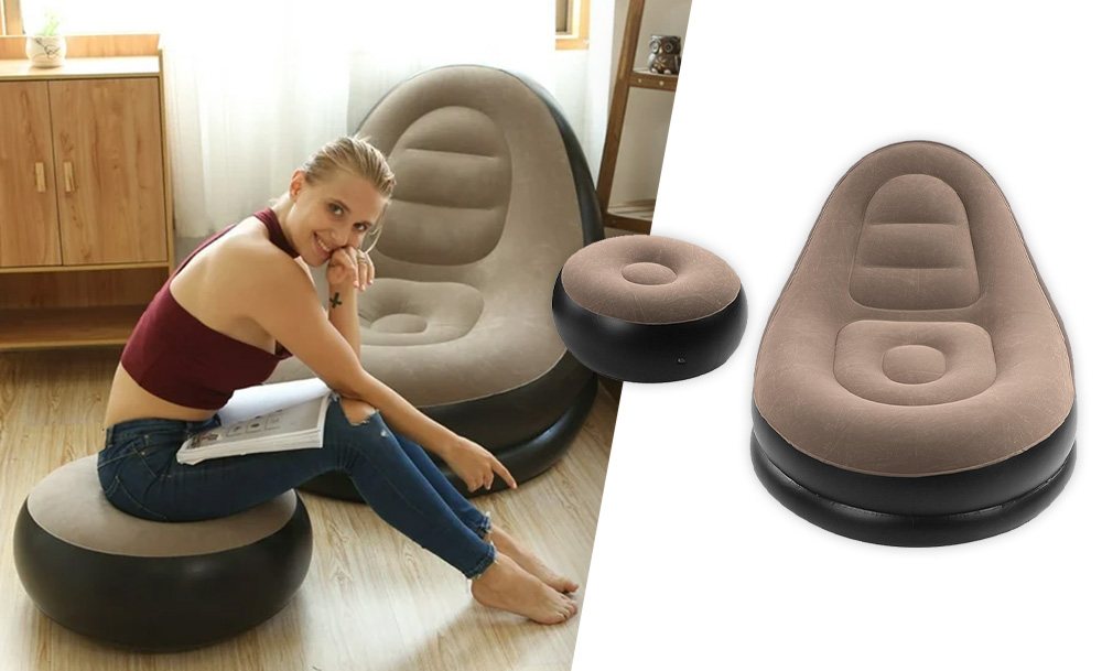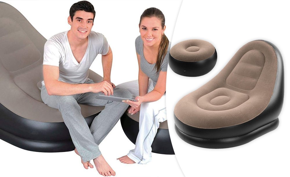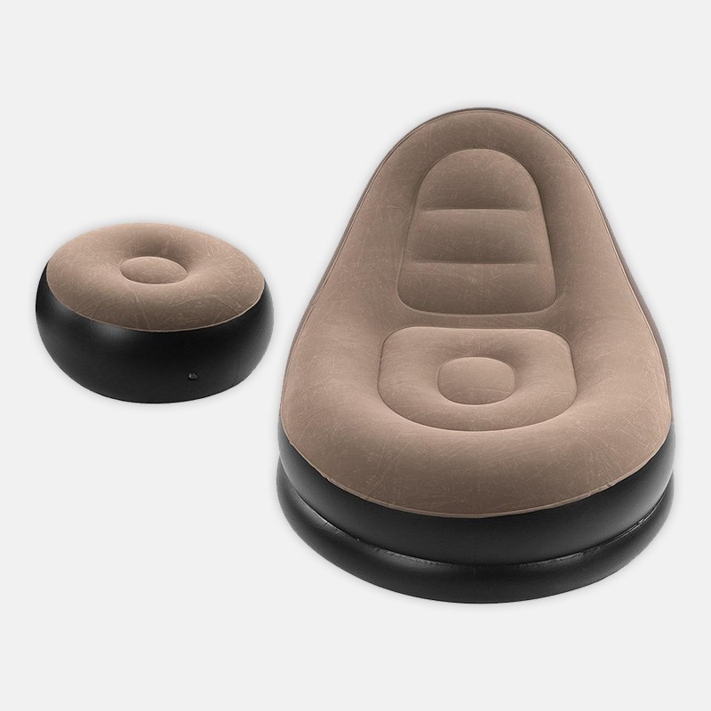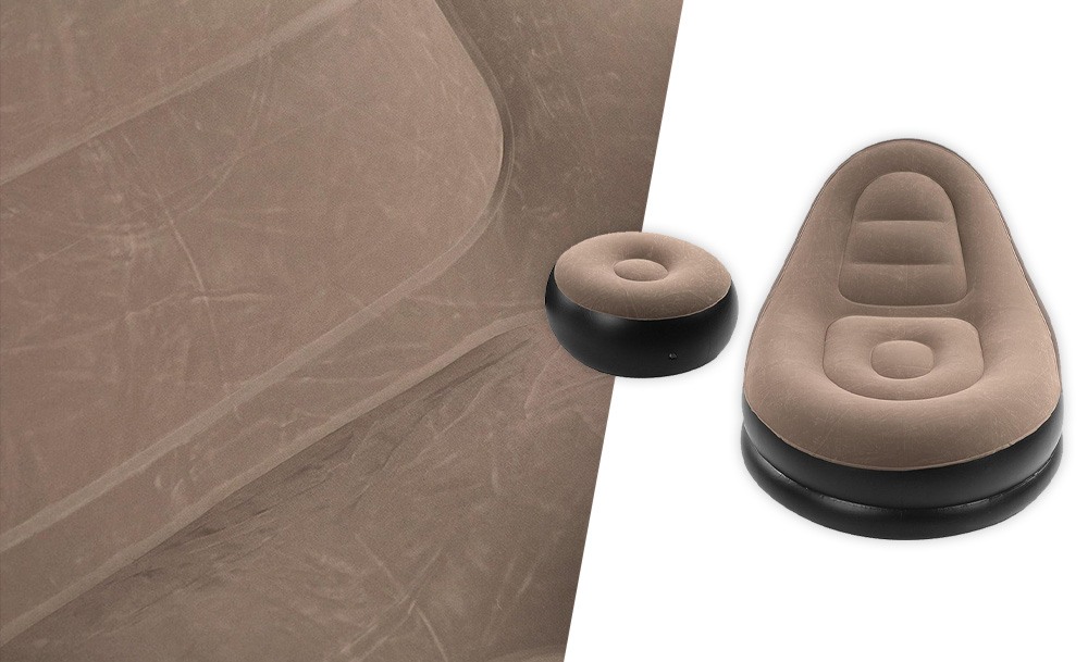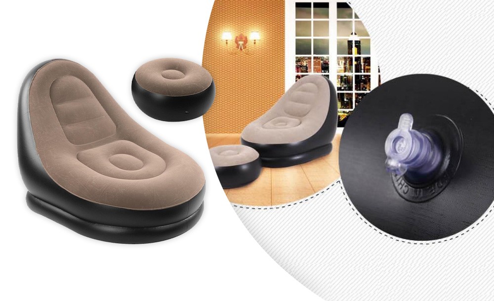 Надувное кресло с пуфиком AIR SOFA изготовлено из современных и высококачественных материалов. Верхняя часть кресла и пуфика имеет флокированное покрытие, мягкое и приятное на ощупь. Надувное кресло AIR SOFA – отличный выбор для Вашего отдыха. С этим надувным креслом можно полностью расслабиться.