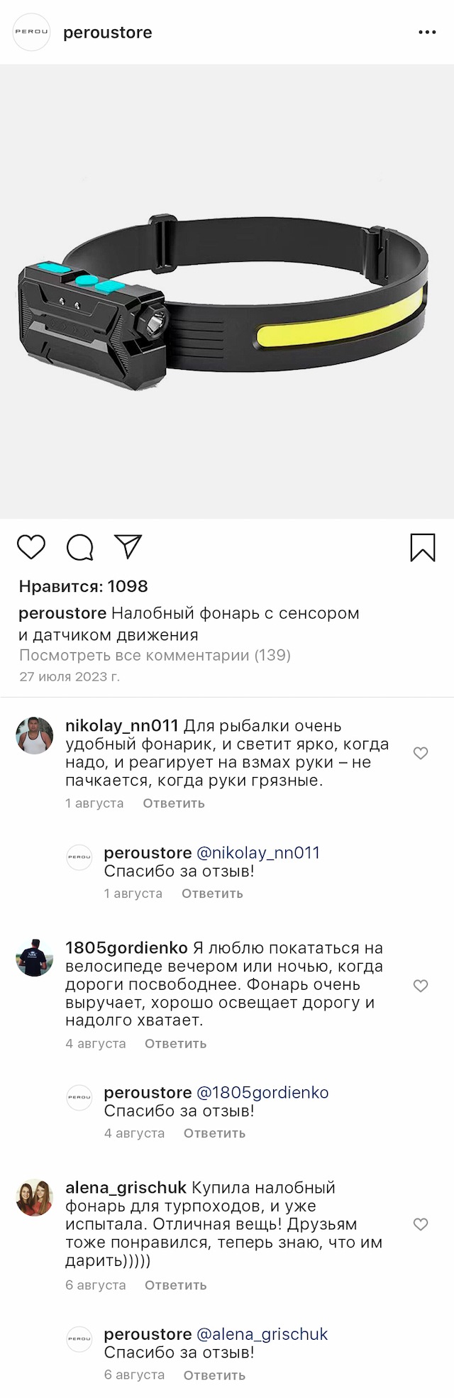 Фонарь имеет кнопку включения и датчик сенсорного управления, что очень удобно, когда руки испачканы или заняты. Регулируемый ремешок позволяет использовать его на любой объем головы. Фонарь заряжается через USB-порт от любого источника питания и работает непрерывно до 8 часов.