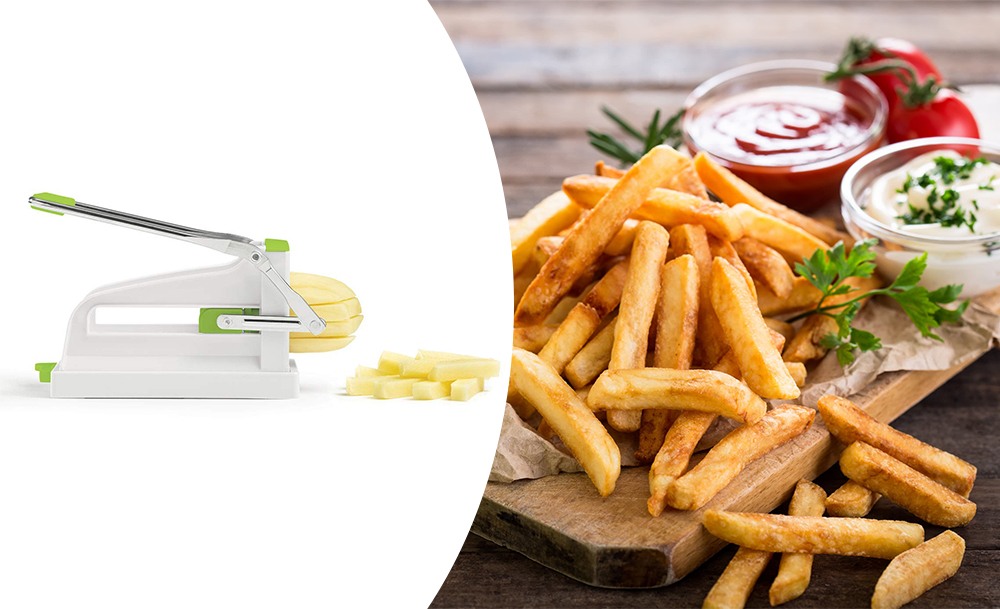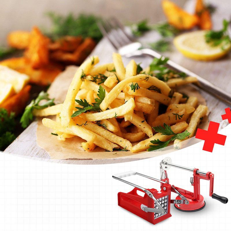 Машинка для нарезки спиралью позволит оригинально подготовить картофель для жарки домашних чипсов. С ее помощью можно также порезать другие овощи, чтобы красиво украсить и подать любые блюда к столу. Прибор для картофеля фри быстро и без усилий нарежет необходимое количество овощей на ровные аккуратные ломтики нужного размера. Благодаря острым лезвиям одним движением руки получается сразу большое количество продуктов.