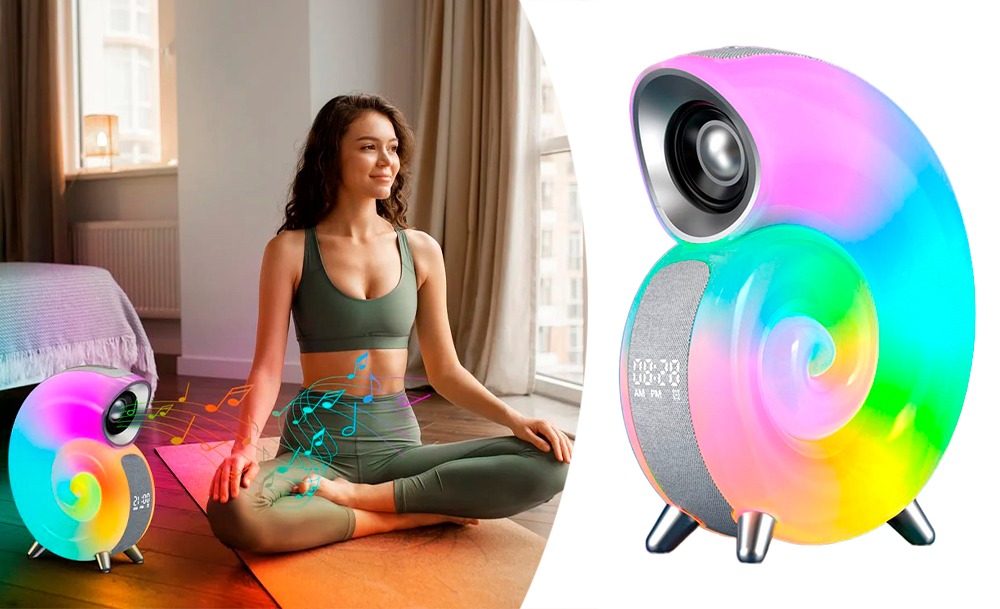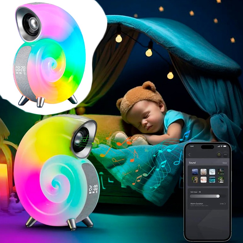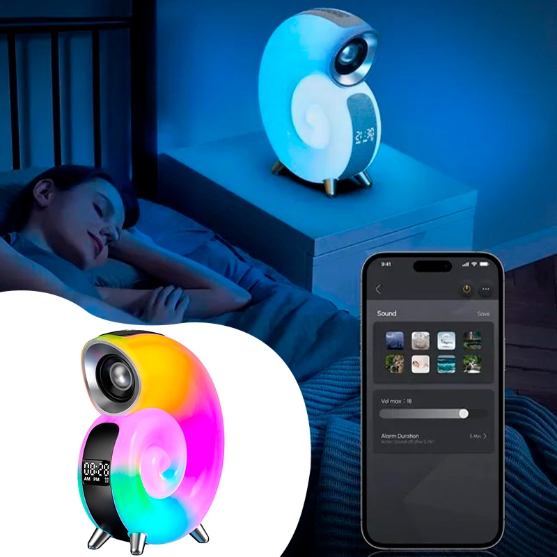 Портативная смарт-колонка Light Sound Machine N70 создает атмосферу и идеальное настроение для любой комнаты. Лампа оборудована Bluetooth, часами, будильником, LED подсветкой и приложением для управления через смартфон.