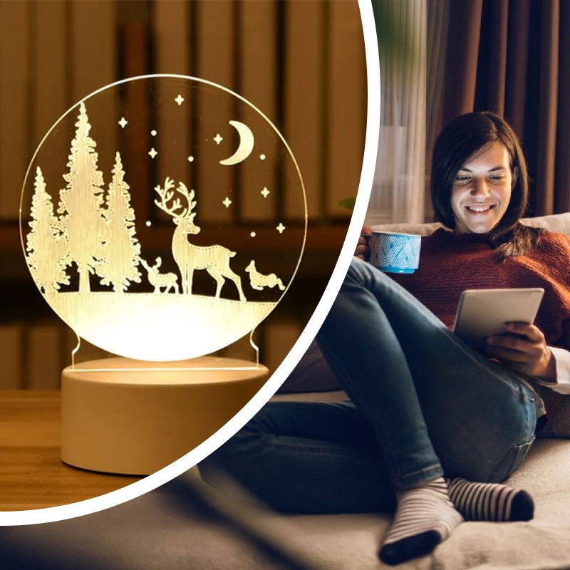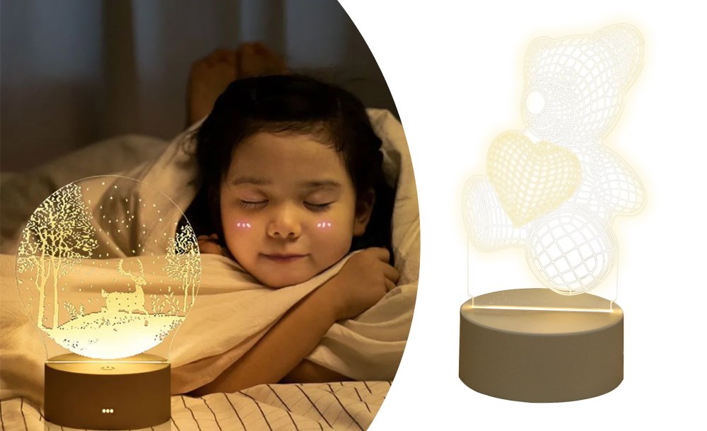 Акриловый 3D светильник – это высокотехнологичная новинка, которая открывает удивительный мир волшебства и иллюзии. В подставку со светодиодной подсветкой вставляется прочная прозрачная пластина с гравировкой из акрила; в темноте этот узор светится, проецируя объемный 3D эффект.