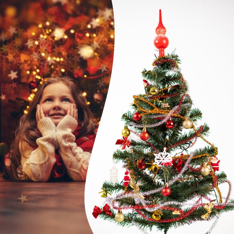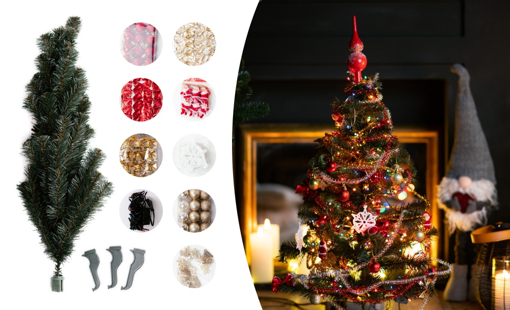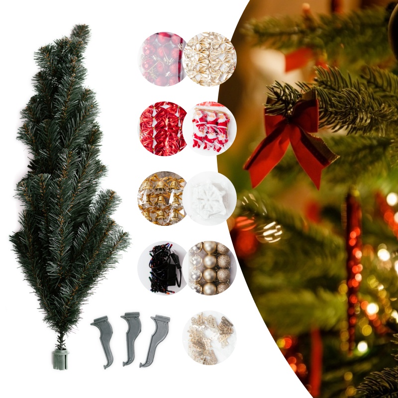 Новогодняя искусственная елка с набором украшений, светодиодной гирляндой и верхушкой – все, что необходимо для создания праздничной атмосферы в доме. Набор украшений включает в себя красивые елочные шарики и колокольчики, снежинки и бантики, 2 вида разнообразной новогодней мишуры и даже Дед Морозов.