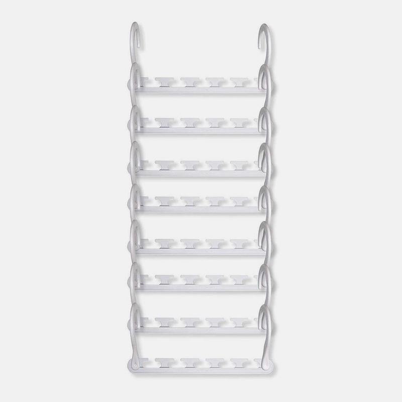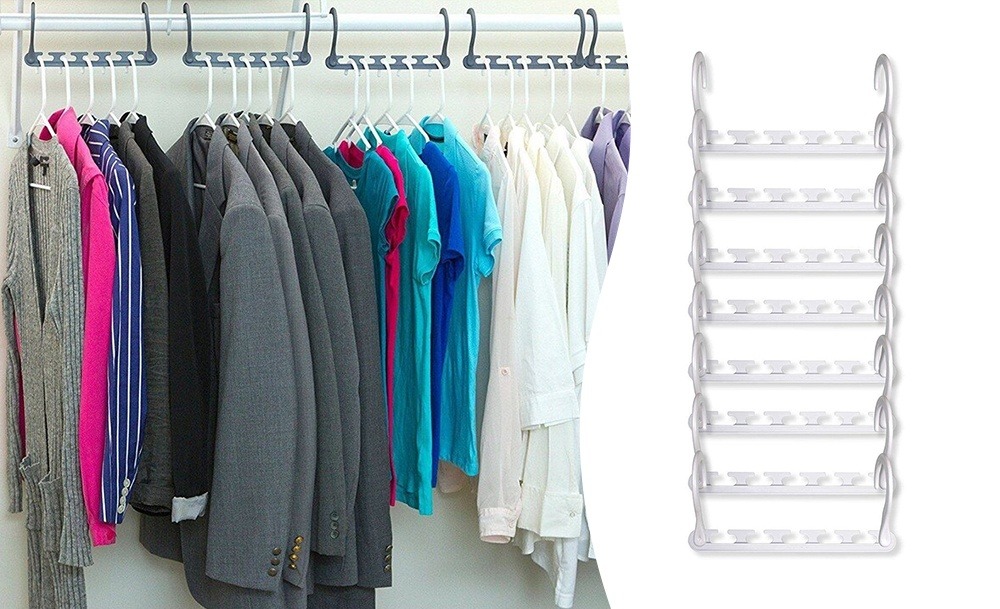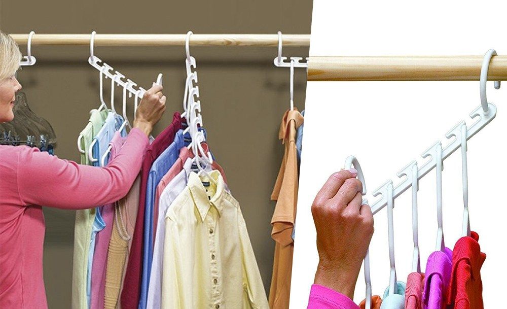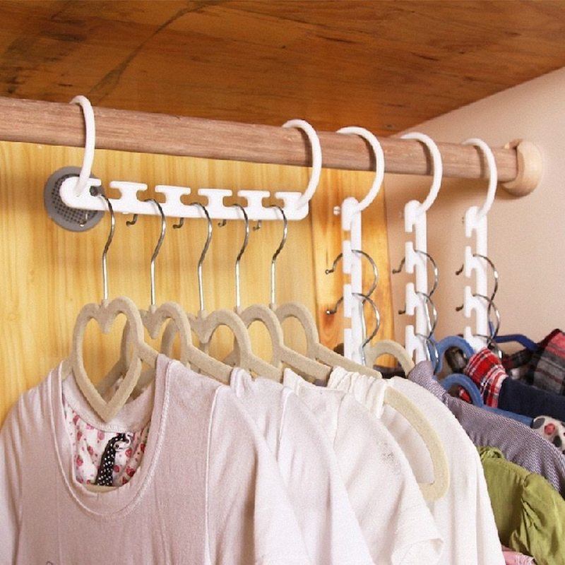 Универсальная вешалка с 5 перекладинами вместо одной поможет навести порядок в шкафу, повесив сразу несколько пар брюк, юбок или рубашек с помощью специальных зажимов и петель. Органайзер для хранения сумок можно расположить в любом удобном месте – внутри шкафа, на двери или на стене, разместив на нем до 16 сумок разных размеров.
