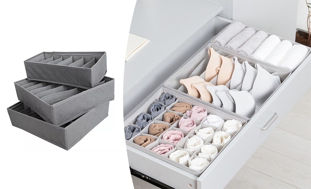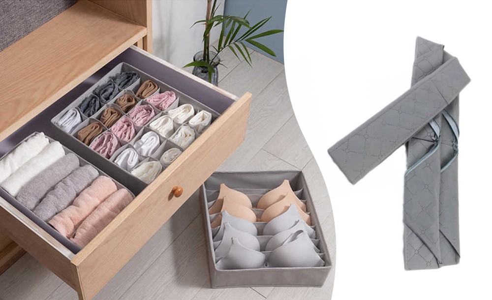 Органайзер для нижнего белья позволит компактно и аккуратно хранить вещи на полках гардероба. В разных по размеру отделениях можно разместить любые вещи так, что каждая будет на виду, и ее не придется долго искать.